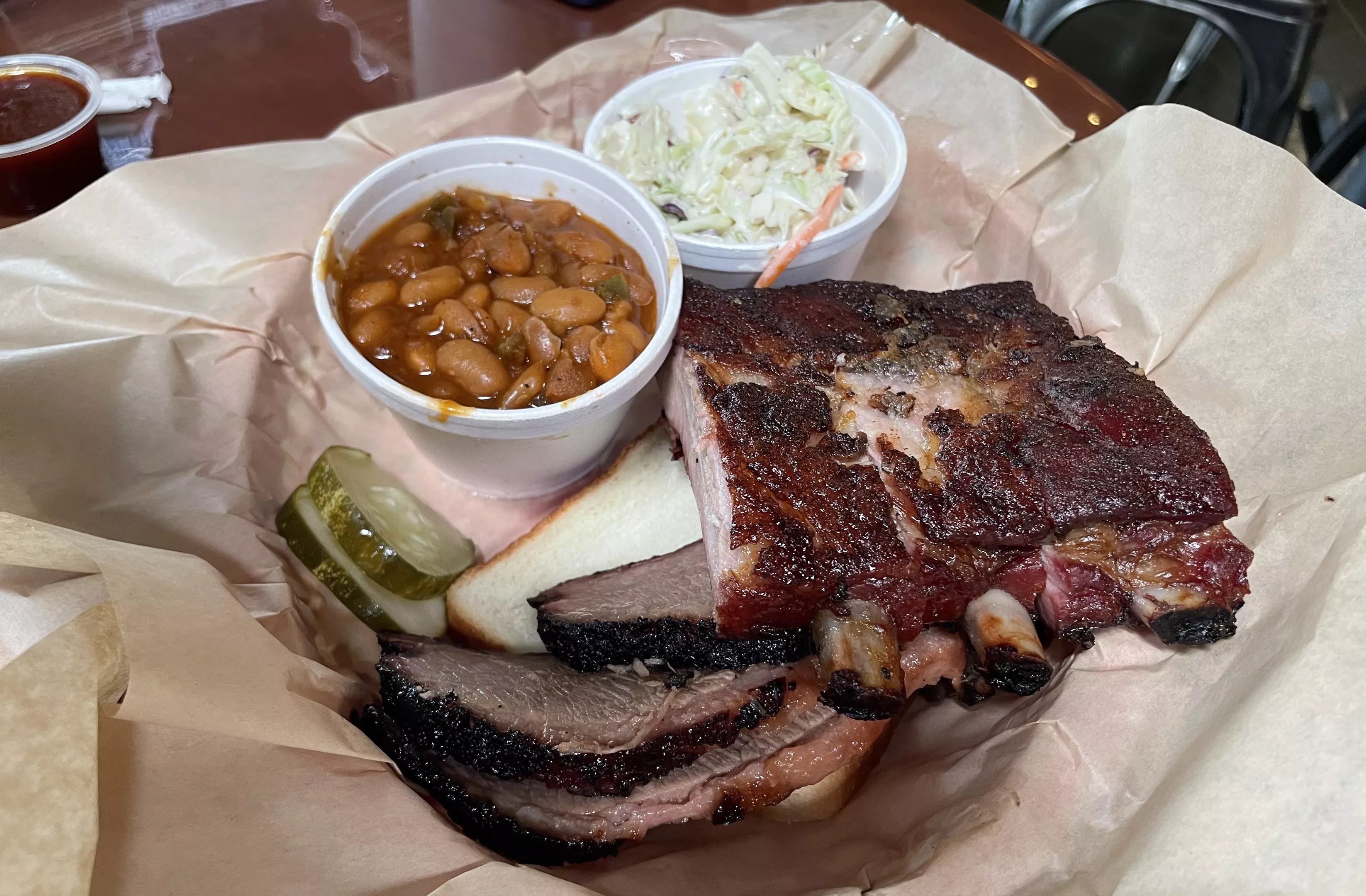 Pork ribs and vinegary Dr. Pepper barbecue beans are among the standouts at Cryin’ Coyote BBQ.