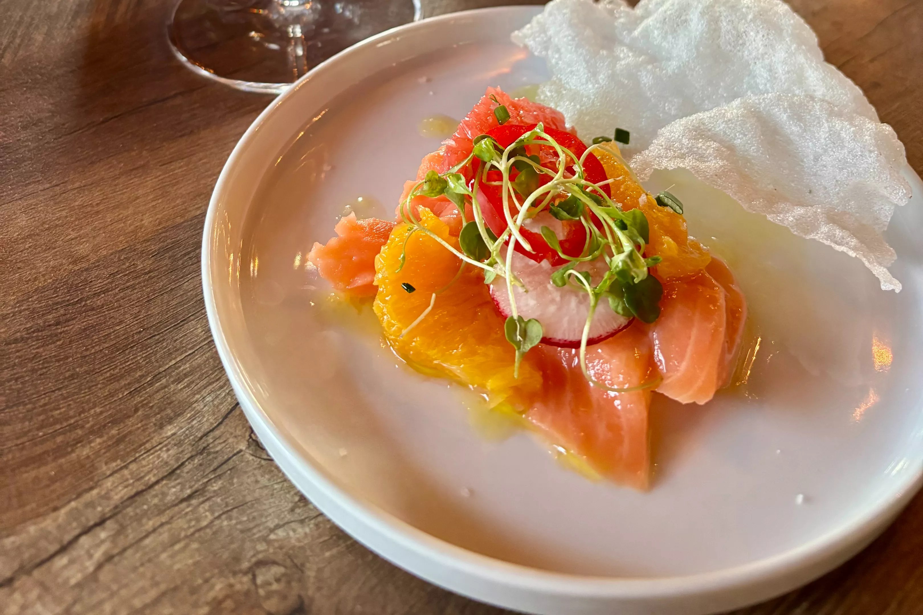 3603 E. Indian School RoadTucked around the side of the Gaslight Square shopping plaza in Arcadia, The Market by Jennifer’s quietly churns out a tasty menu for brunch and dinner. And throughout the year, they host a series of events including a monthly wine pairing dinner. In March, the dinner paired rose wines with a delectable selection of courses. The salmon crudo was a standout. Thin slices of raw salmon were layered with orange and grapefruit segments, shaved radish and Fresno chiles. The cool, fresh ingredients were topped with a honey and citrus vinaigrette and sprinkled with sea salt flakes. The dish was bright and refreshing, with flavors enhancing the sushi-grade salmon while letting it shine.
