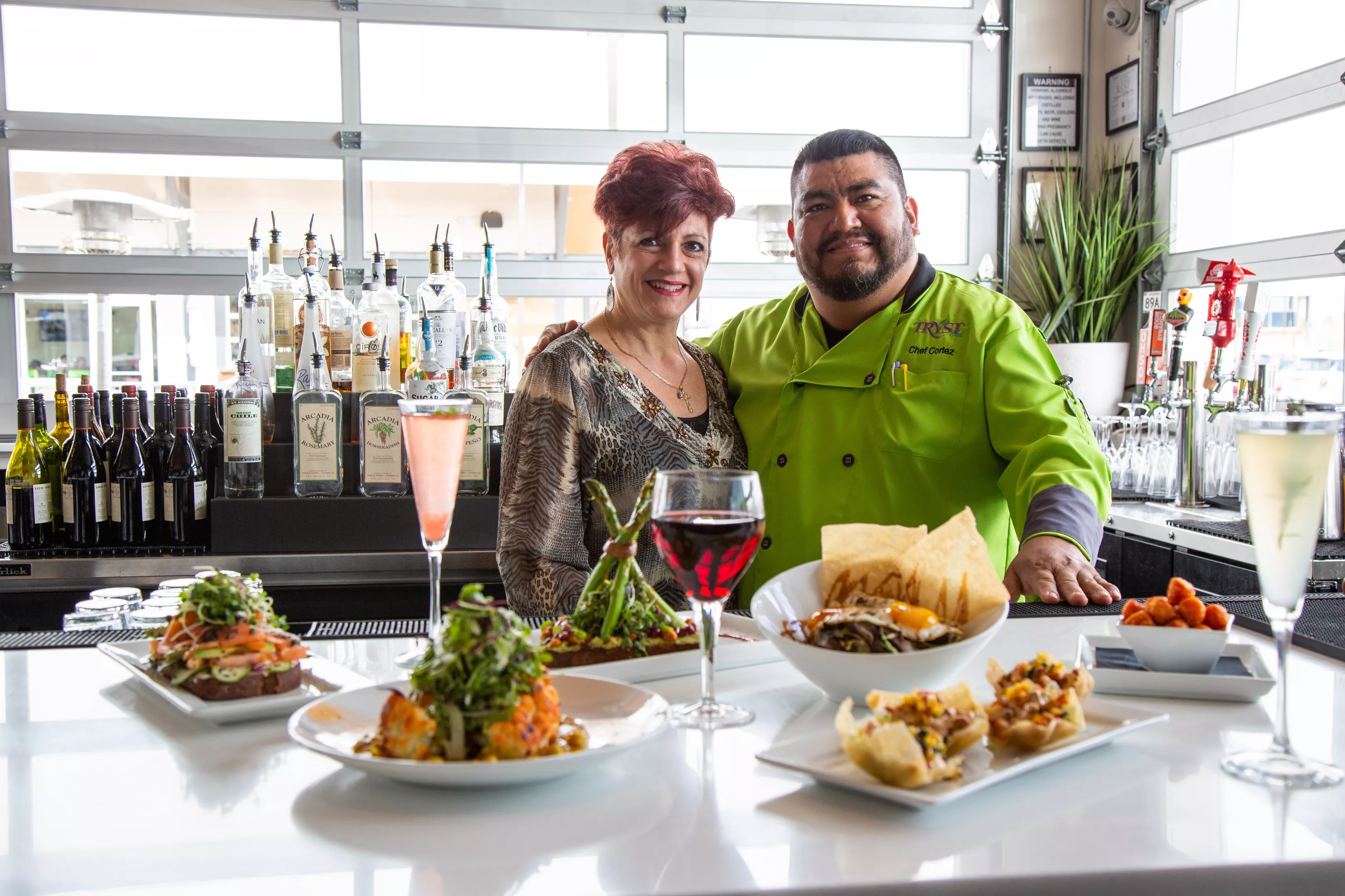 Tryst Cafe in north Phoenix and Chandler is an all-day restaurant with a vibe that is strongly breakfast if you sit on the patio in the morning. The breakfast menu is sprawling, with some refreshingly original offerings. Whimsical selections include a Monte Cristo sandwich with strawberry jam and sweet potato tots; a Hawaiian breakfast that makes use of smoked pork, jasmine rice, and wontons; and a lox spread with avocado and daikon sprouts. Pancakes are fluffy and on the rustic side, and omelets are solid. As for drink offerings, Bloody Marys come in five or so versions, utilizing vodkas infused with flavors like cucumber and basil.