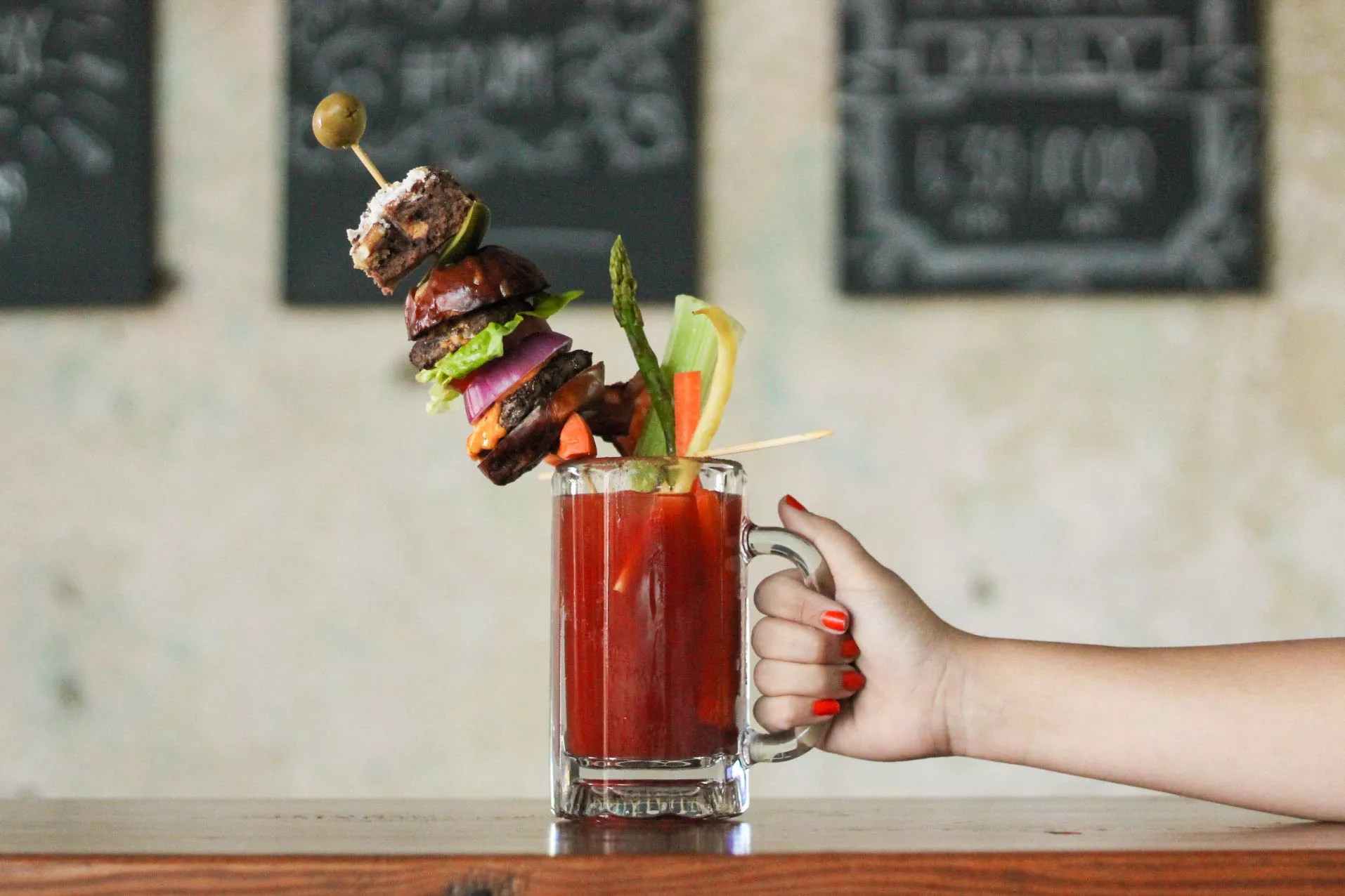 You’ll need both hands to carry this drink back to your table, as the DeSoto Market’s Kraken is rightly dubbed “a meal in a glass.” It comes complete with all the fixings – meaning the usual stalk of celery, olive, carrot, and asparagus sticks – plus a straight-up slider and brownie on the end of the monster skewer. The Kraken is served daily till 10 p.m. for $18.