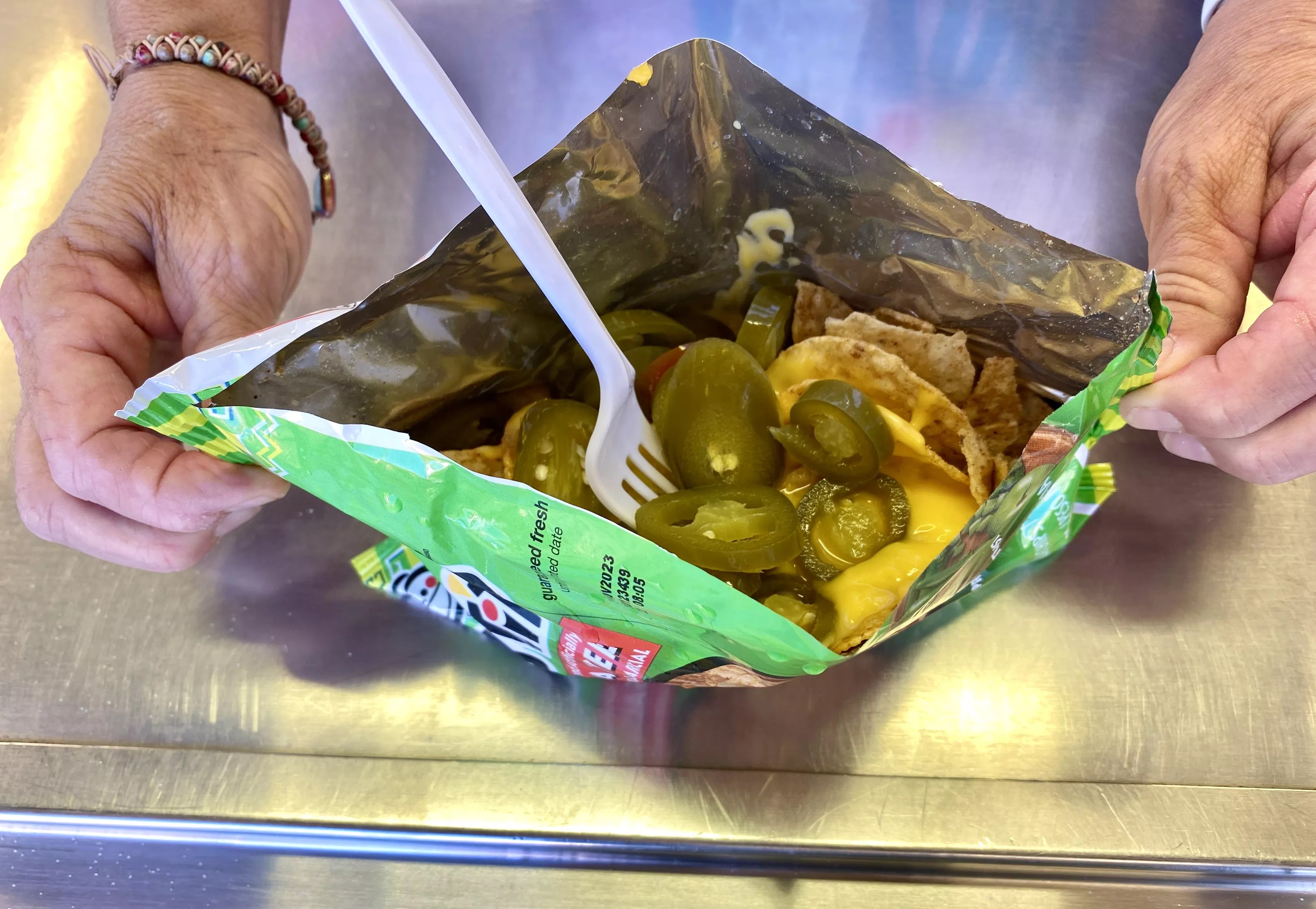 Big Dogs 2 Sometimes you need a salty snack between rides that doesn’t require sitting down or even stopping. Grab a bag of Tosti Nachos, zhuzhed up Tostitos that come in the most convenient container: a single serving bag of chips. Dive in with a fork and savor the kick of the jalapenos with the crunch of the chips and the melty viscosity of the cheese, a triple threat in a container that’s as convenient as it is practical. Or skip the fork and dig in with your hands. There’s a Slingshot calling your name.