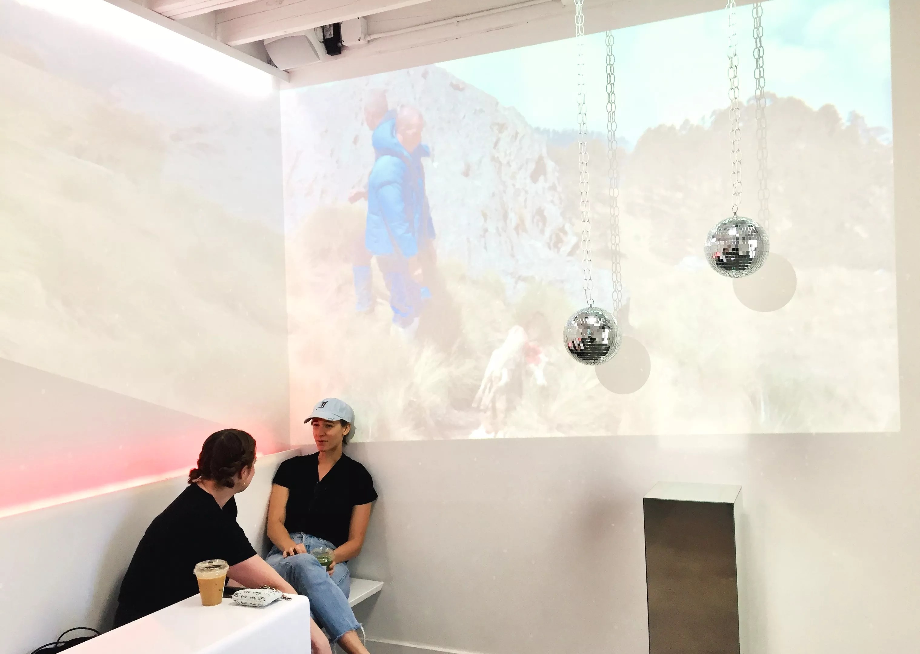 Low-intervention wine bottles on the sound-absorbent cork wall at Sauvage.