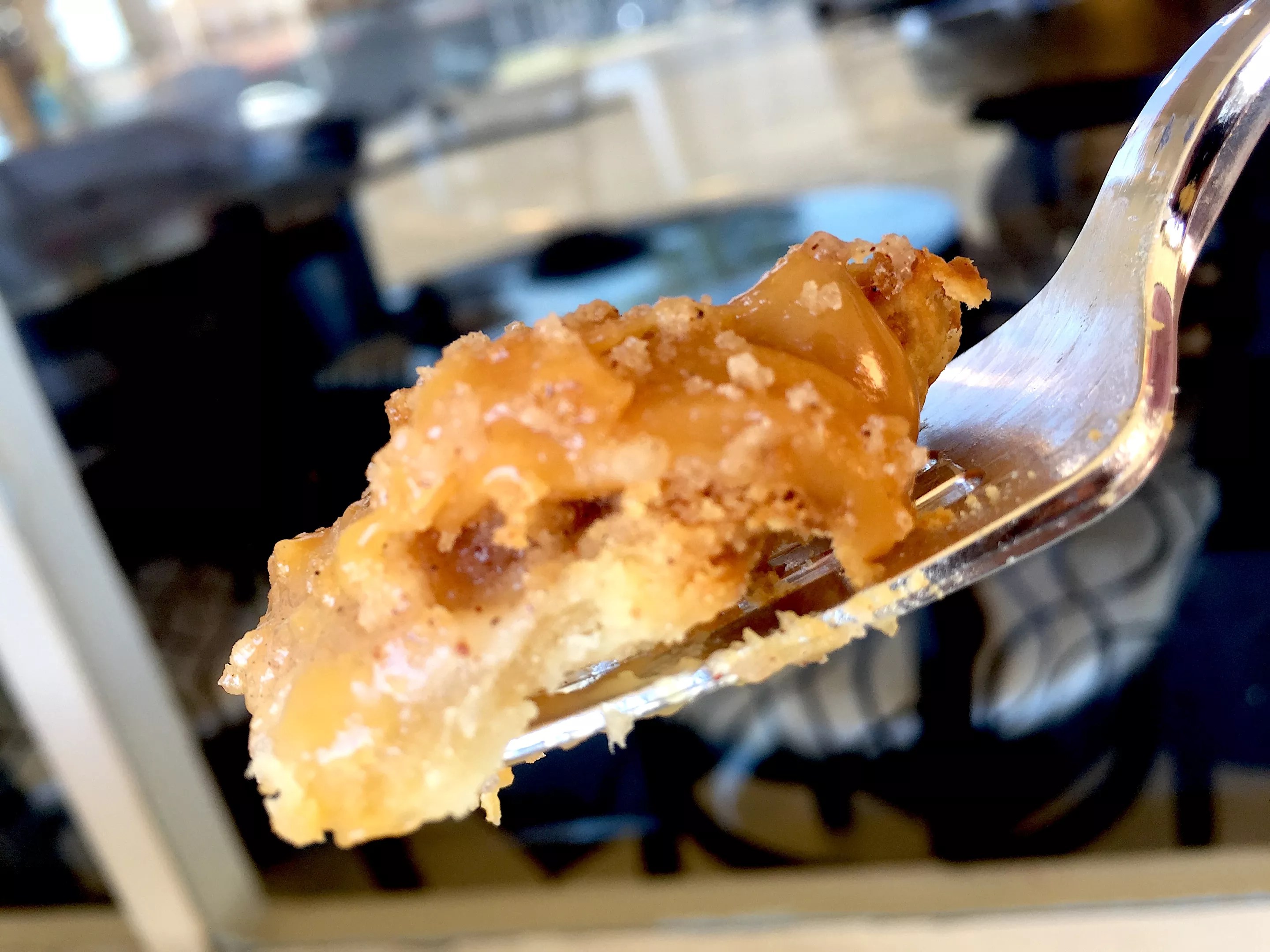 There’s something decadent about having a personal mini pie, an all-for-you circle of yumminess topped with an expertly woven golden brown crust singing with crystals of sugar and splatters of cherry. Forget moving it to a plate. Just dig right in, through the flaky butter crust and into the eye of the storm, a syrupy wonderland of anti-gravity cherries suspended in a lava-like syrup. Cold butter is a yes and imitation flavors are a no for owner and head baker Dana Dumas. Get to Sugar Jam Bake Shop & Bistro early or cherry might be long gone.