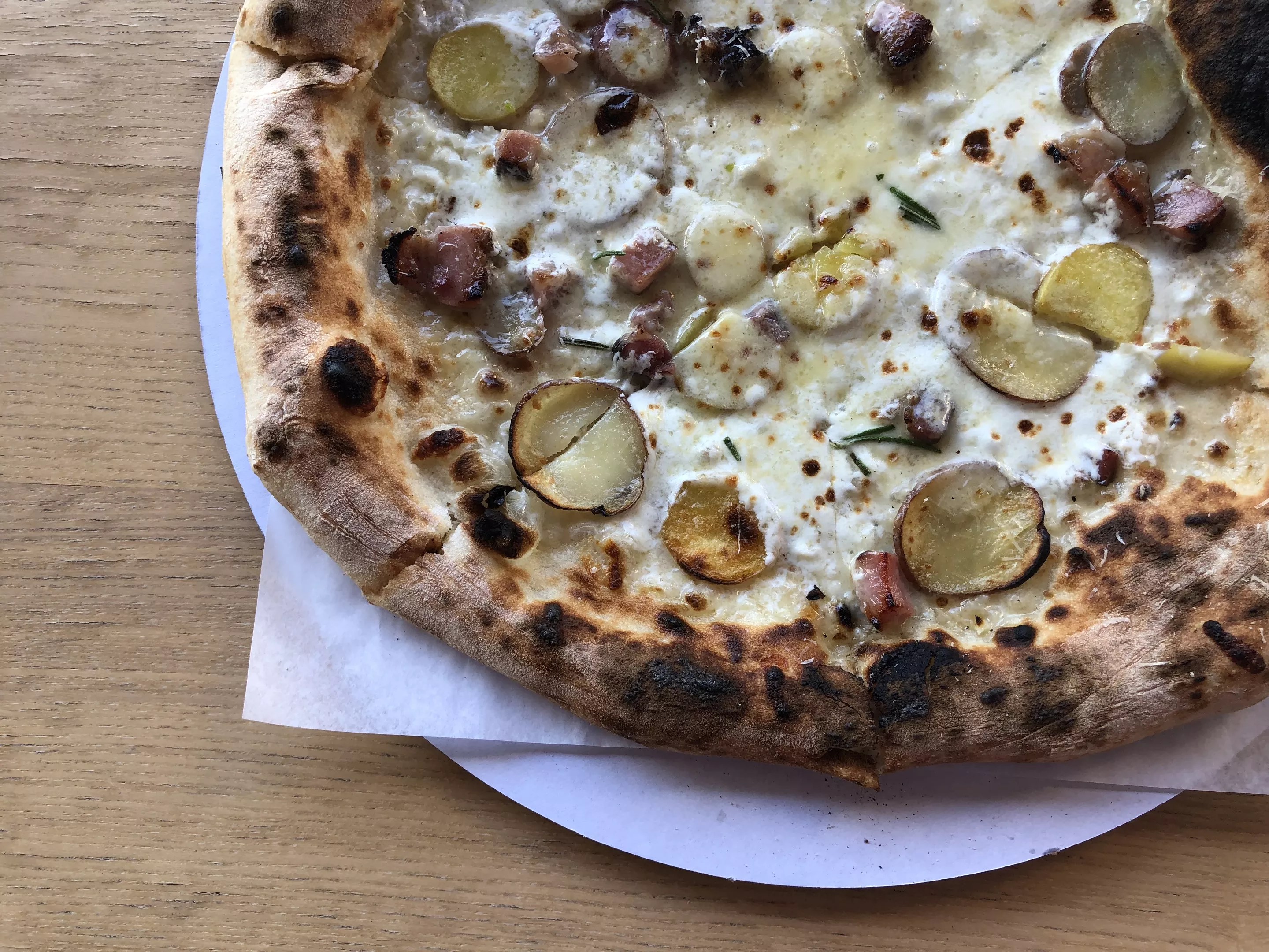 This pizza pop-up in Mesa is only open a few days a week. And that’s a shame, because Myke Olsen is baking some serious pies. One of the more progressive and visually arresting pizzas now on the menu features bacon, rosemary, potatoes, and garlic cream. The bacon chunks melt and leak their glorious flavor over the pizza. The rosemary comes in faintly, not too piney, just enough to bridge the pork and potatoes. I don’t know why we don’t really see potatoes on pizza in the States. They are magic in thin slices, with a soft texture in the same realm as cheese. Though several toppings coat this pizza, Olsen distributes them with restraint, letting the flavors of his long-fermented dough shine. The crust gains some sex appeal from diaphanous black bubbles that form in his portable gas ovens. This is a white pie to convert the red-sauce fanatic.