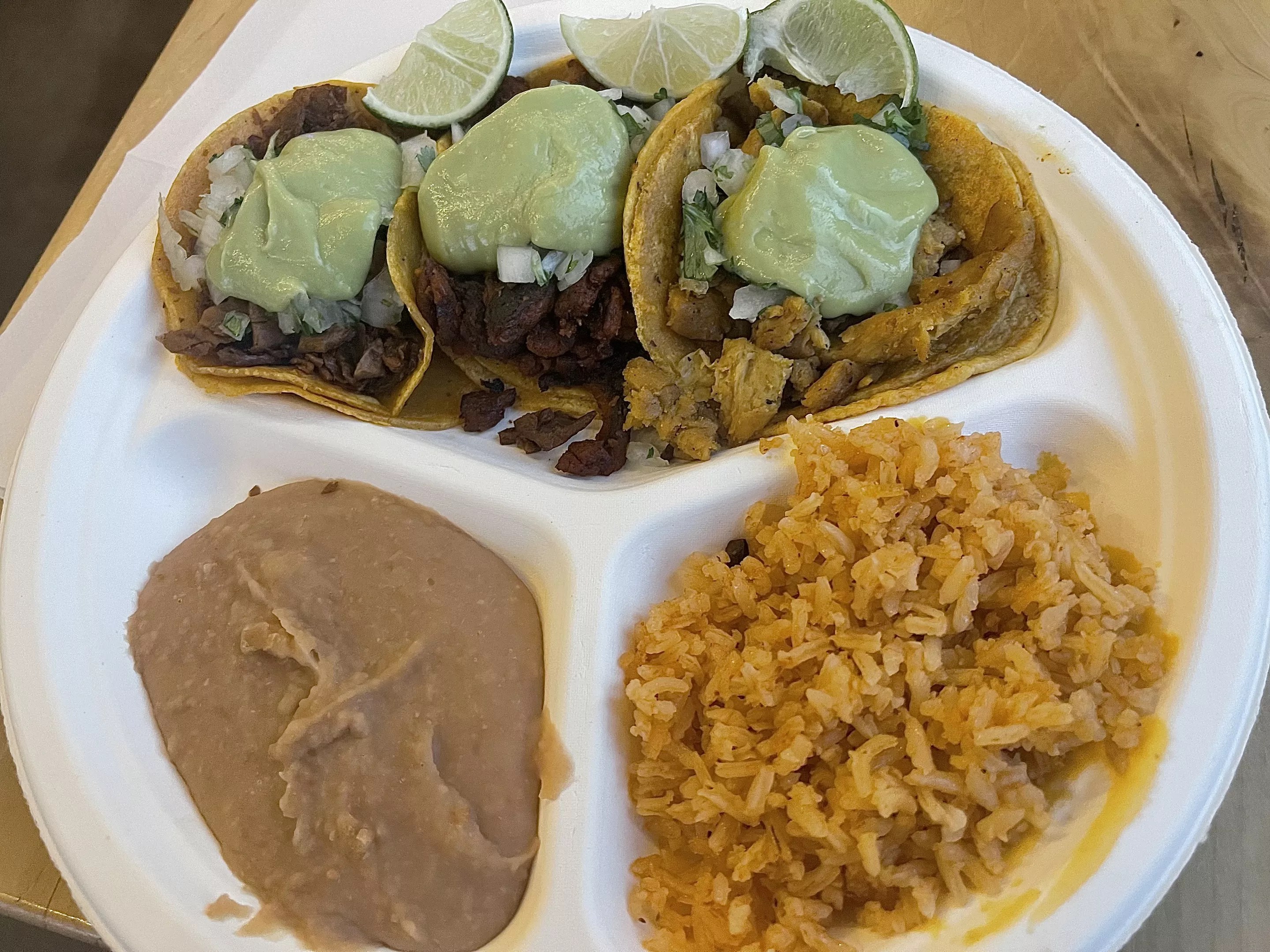 Try multiple protein options with a combination plate at Tacos Veganos.