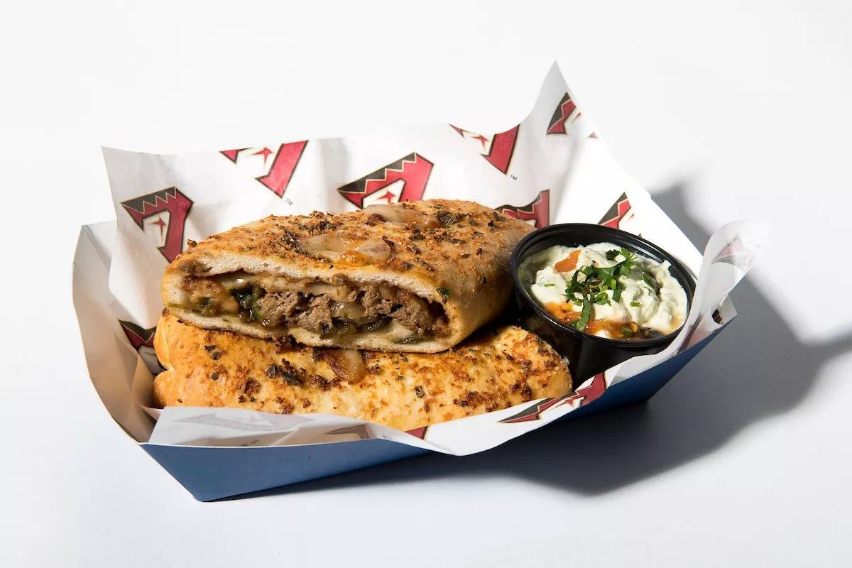 And you may be right, because these offerings are pretty substantial. The Big Shot Stromboli has beef barbacoa, mole sauce, Chihuahua cheese, roasted poblano peppers, and caramelized onions all jammed inside Cotija cheese and Mexican oregano-seasoned pizza dough. (Could have been called the Mexican Connection, but hey.) It’s served with avocado and charred tomato crema, and will run you $13 at the Red Hot Grill in sections 118 and 139 (which might feel like a half a mile away for some of you).