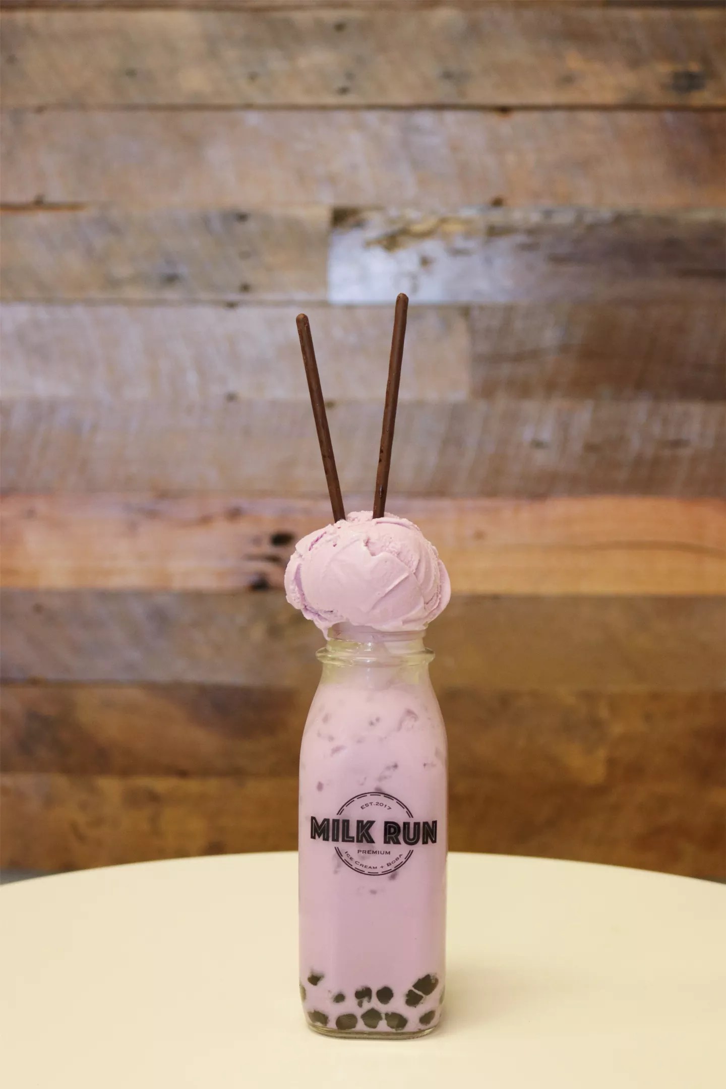Having left a life of protocol behind, Ly stays in touch with his Asian-American roots by turning traditional flavors into new creations. At Milk Run, boba is a welcome addition to house-made Sriracha ice cream or to a milk tea float, a colorful milk tea served in a milk bottle, topped with ice cream and Pocky (chocolate-dipped biscuit).