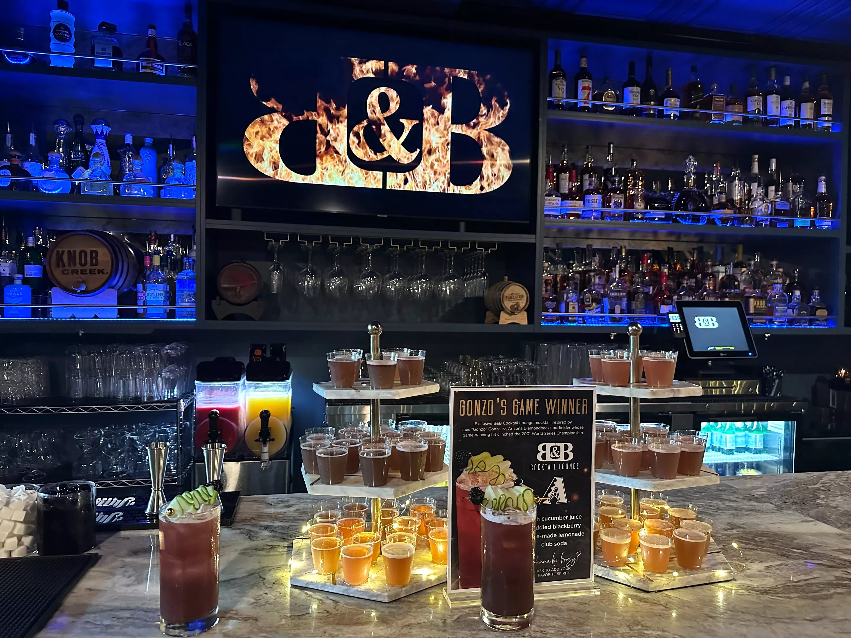 The cocktail bar, which is only open on Arizona Diamondbacks game days and when there are events at Chase Field, serves a large selection of spirits along with beer, wine and craft cocktails. One signature mocktail, which customers can choose to add a spirit to, is the Gonzo’s Game Winner, named after former Diamondbacks outfielder Luis “Gonzo” Gonzalez. It includes fresh cucumber juice, muddled blackberries, lemonade and club soda.