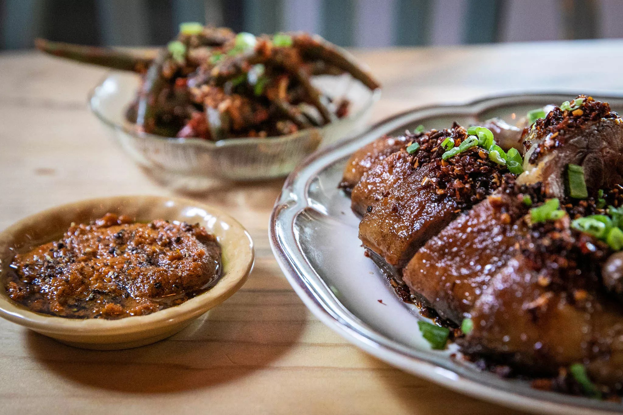 A good introduction to the chef’s handiwork are the braised pork spare ribs. The gently charred pork hunks, slicked in a flavorful fermented black bean sauce, are beautifully caramelized and intensely rich.