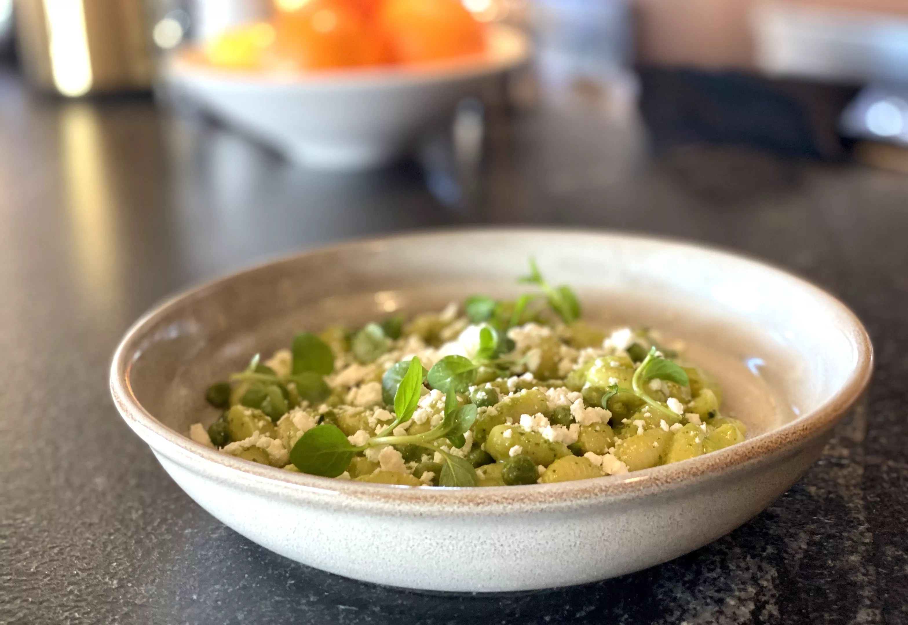 Sweet-pea cavatelli, with pasta made daily from an extruder imported from Italy.