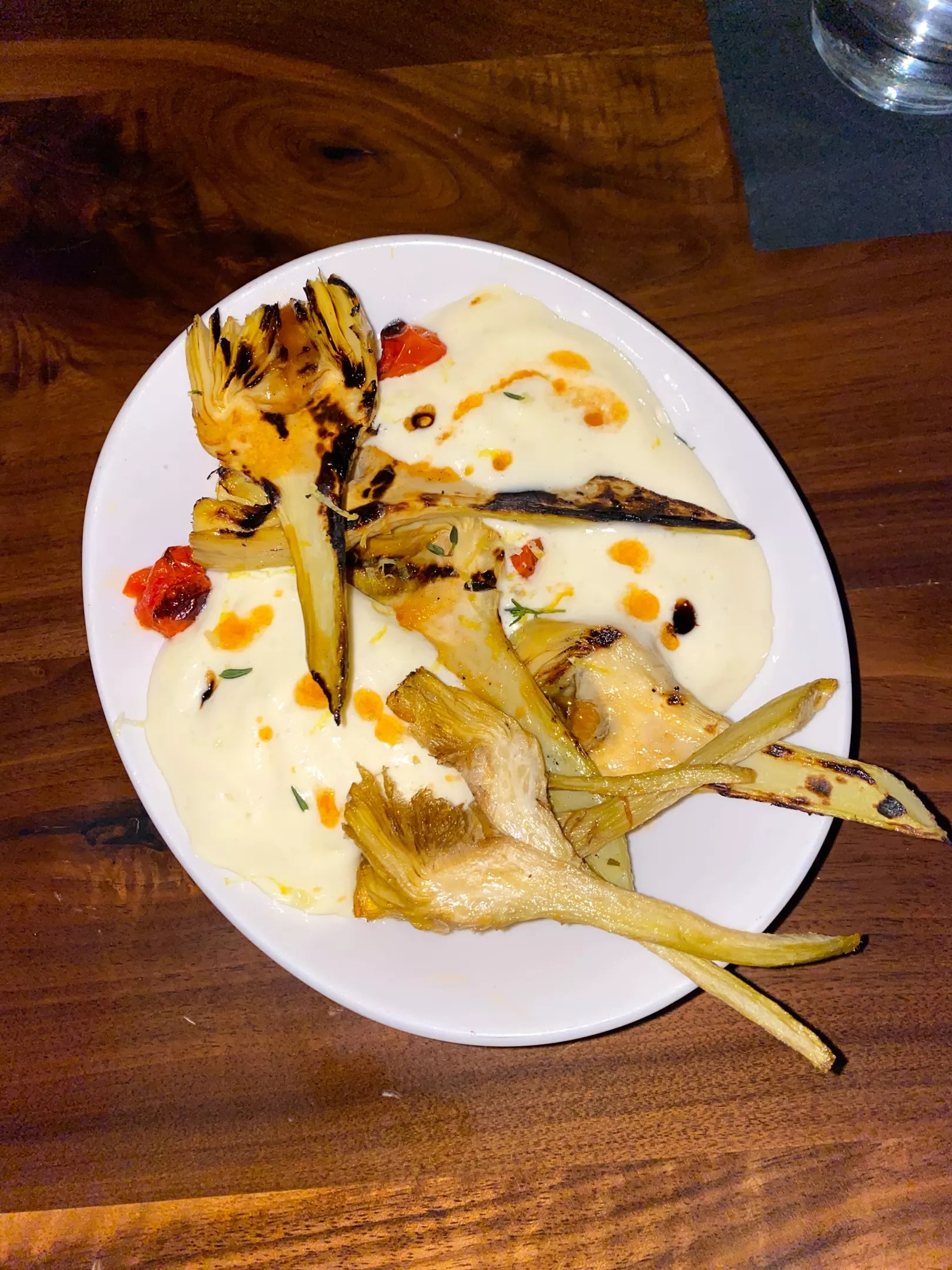 The grilled artichoke hearts with Bellavitano mousse were rich and satisfying.