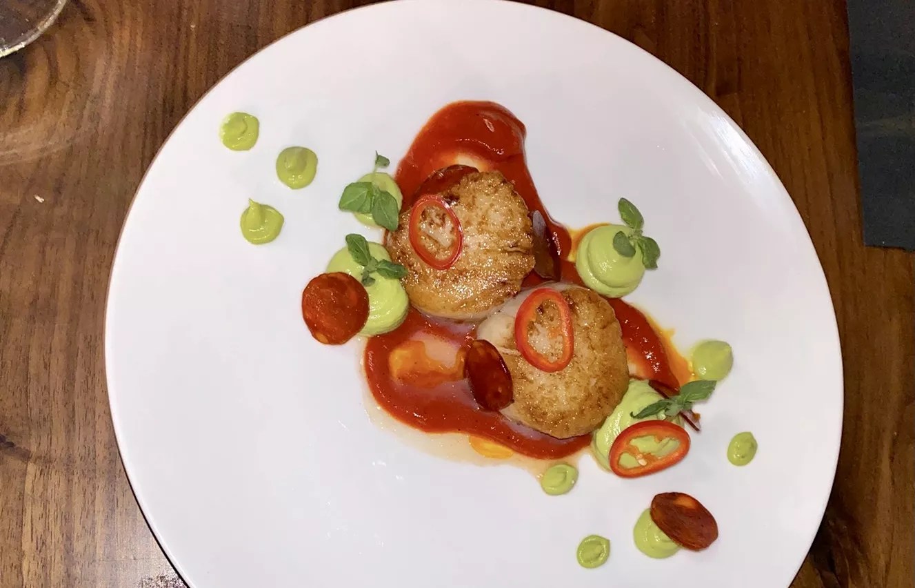 Sea scallops, another from the “Graze” portion, were decidedly lighter but way over-salted. The pair was served with a saffron Bernaise and marinated grape tomatoes. The server-recommended salt and vinegar waffle fries’ were also too salty. (Yes, salt and vinegar fries are supposed to be salty, but this was extra.) When the server cleared the table for dessert, a handful of waffle-shaped stragglers lingered in the bowl, their brininess too much to fully bear.