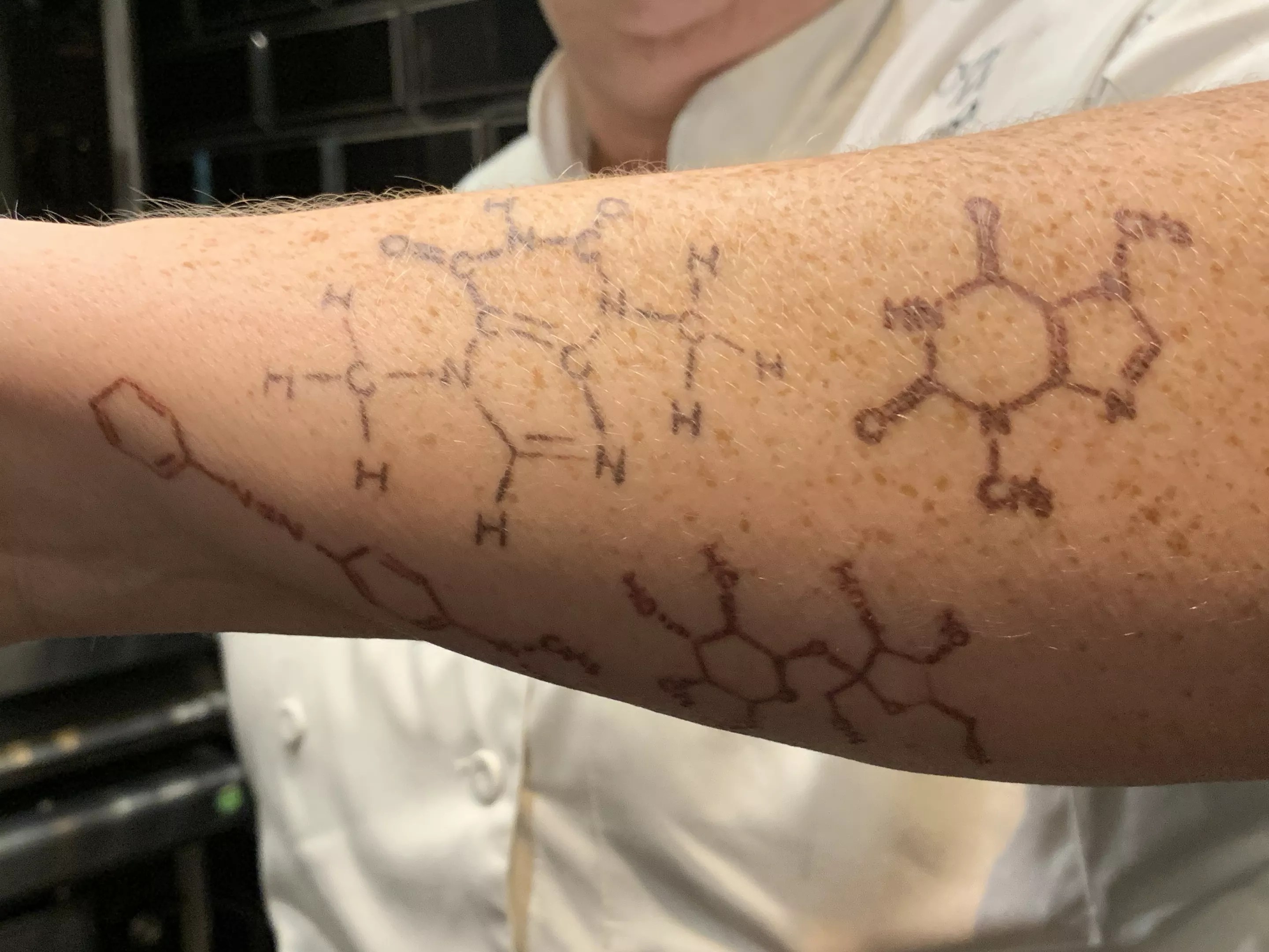 Conner has the molecular structure of chocolate chip cookie ingredients tattooed on her arm.