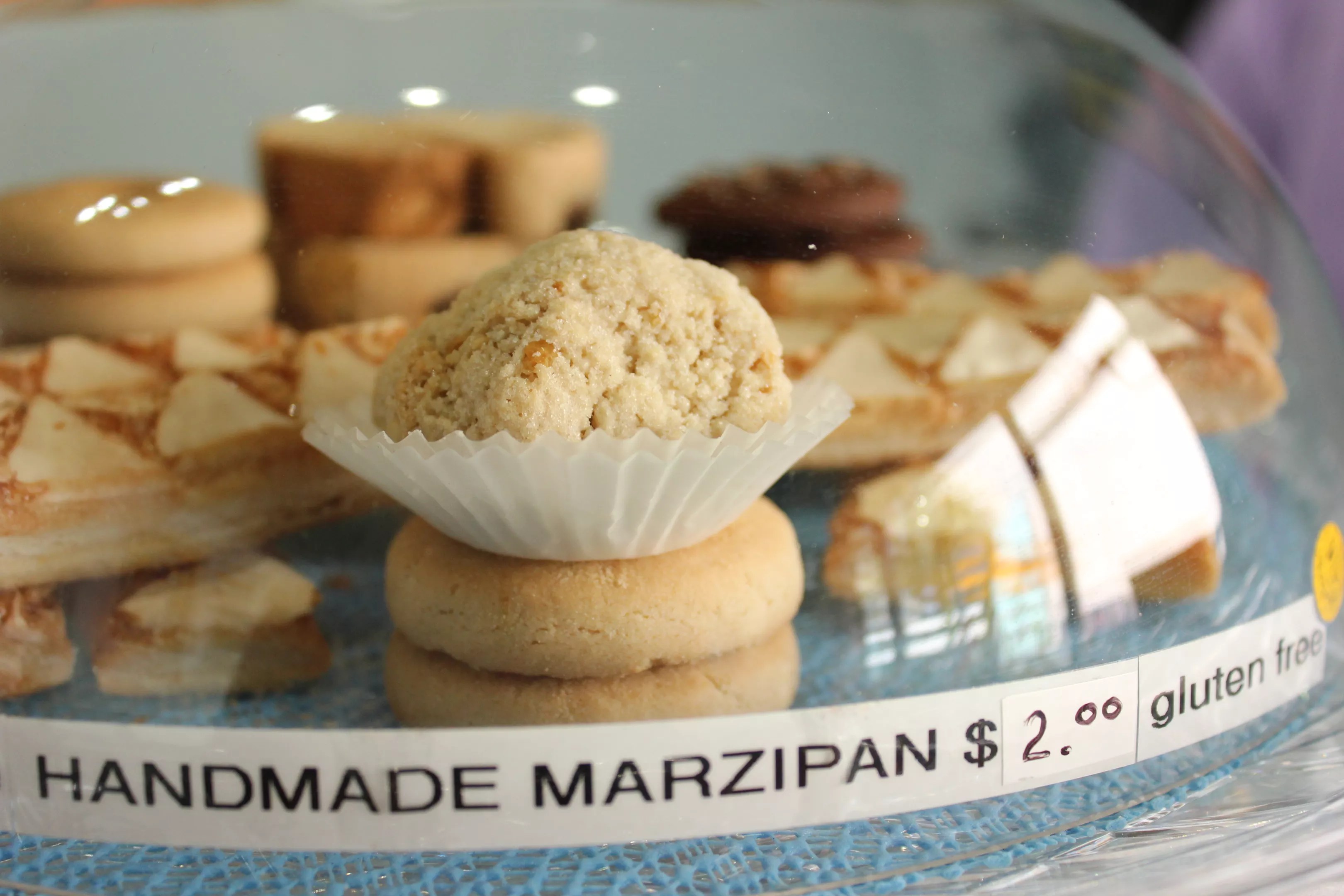 Marzipan, an unexpectedly intricate dessert combining almond paste and sugar.