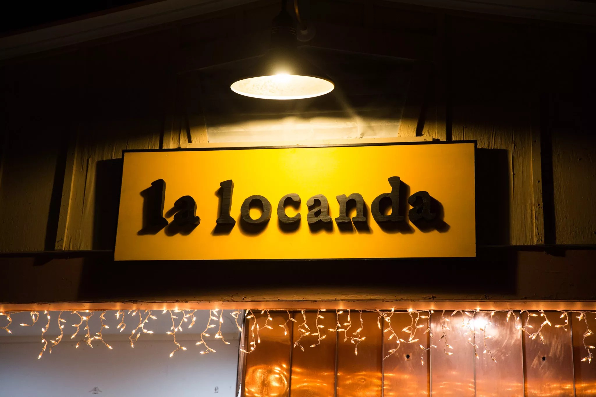 The elegant entrance to La Locanda with exterior signage by Studio LXV.