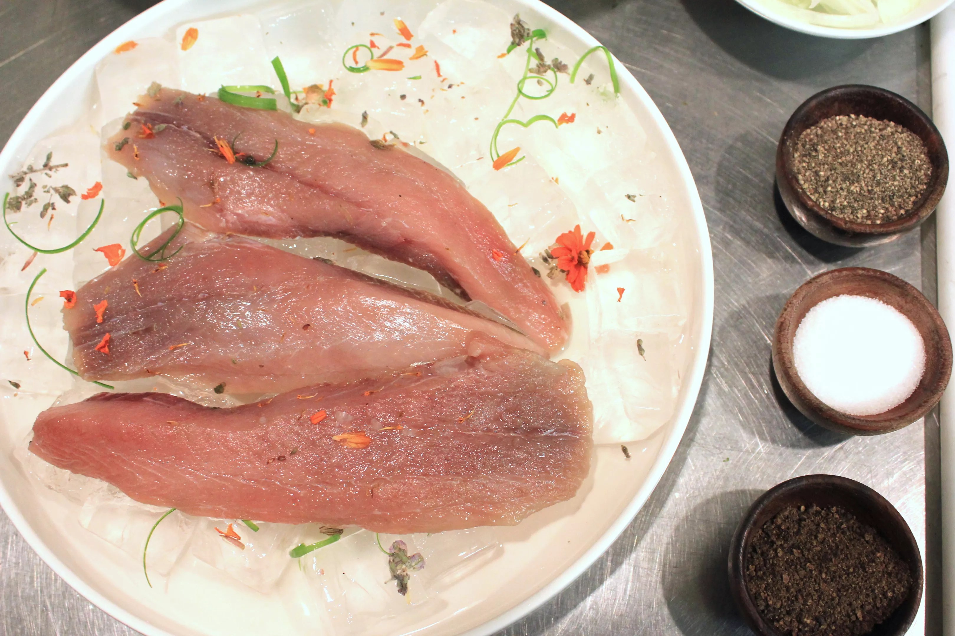 Leoni operates on Pierce Street in Phoenix. She can’t exactly nab a finned beaut from the water. But she has relationships with folks who can. The day I was in, Leoni was working with 20 pounds of fish from Sea to Table, a purveyor. The catch came from fishermen in Florida who used nets, a less destructive method than lines. The fish was striped mullet, a more sustainable mullet species.