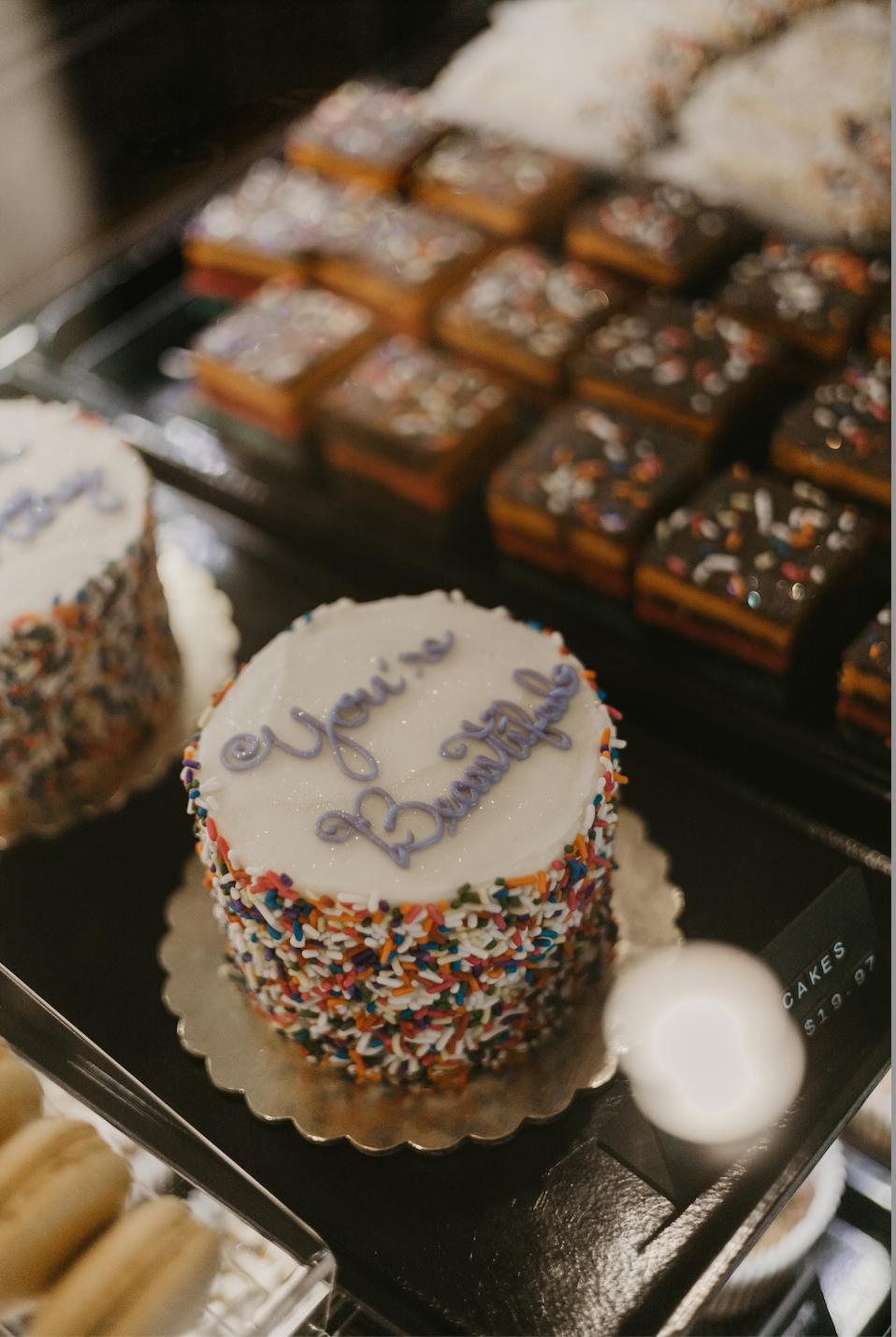 And they do that one bite at a time through their made-fresh-daily Kindness Cakes. The small, four-inch mini cakes feature messages frosted on the top, spelling out encouraging words like “You’re worthy”, “You’re enough”, or “You’re beautiful.”