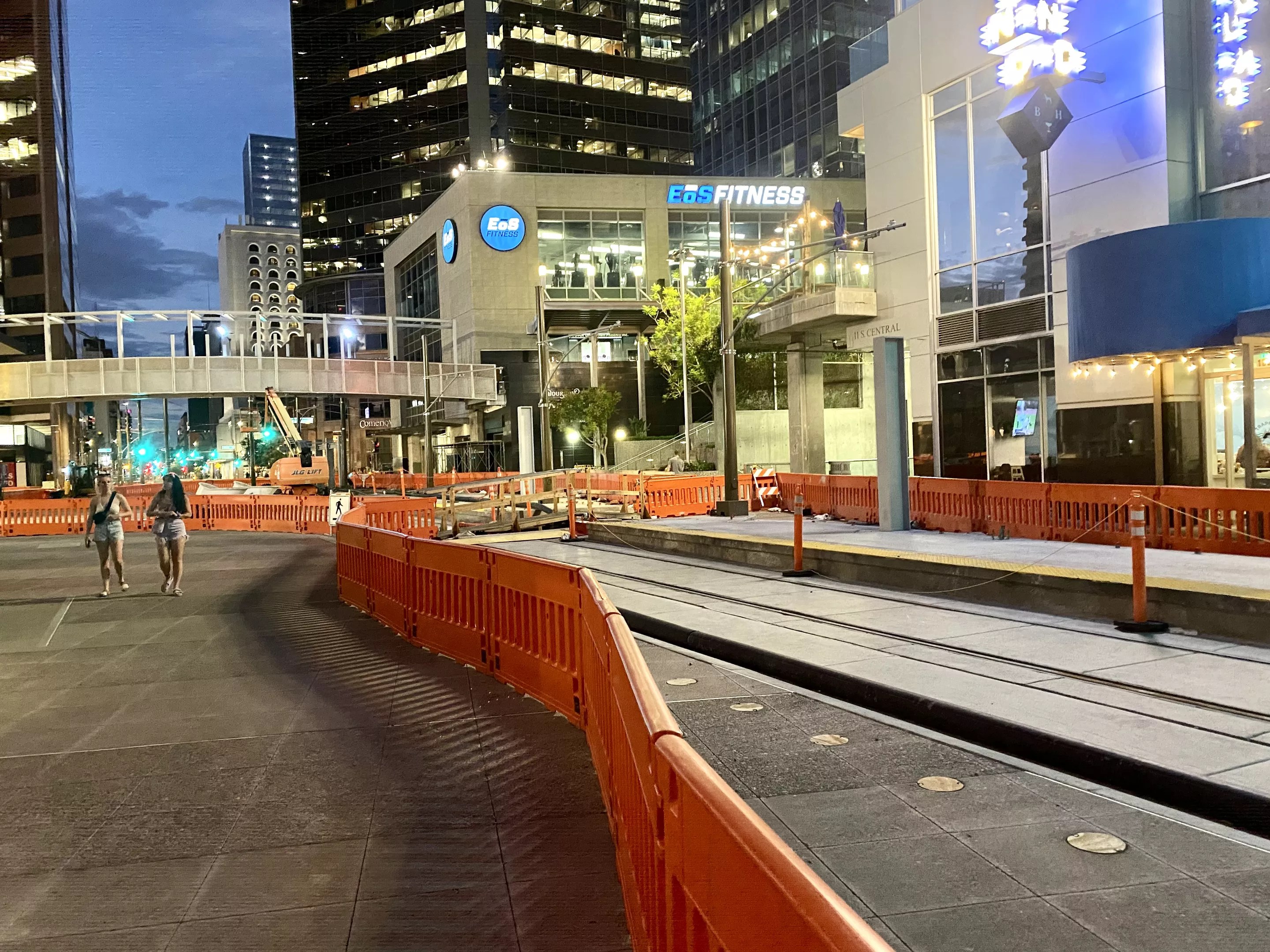 The light rail construction in downtown Phoenix is not easy to navigate.