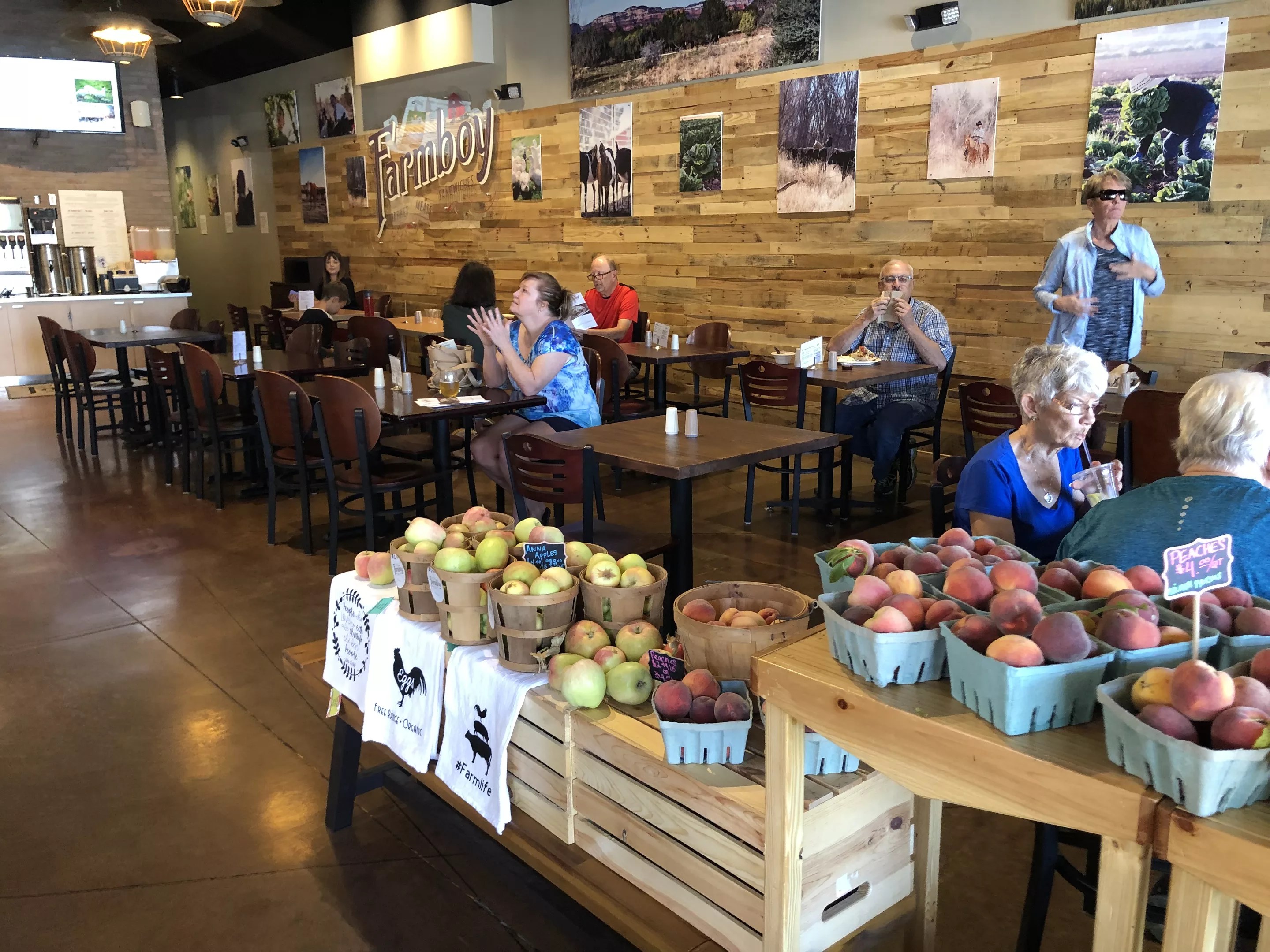 Molovin Farms, the Molovinsky family farm, is a three-and-a-half acre plot in Chandler. It furnishes Farmboy with produce, like fruit from its orchard, and chicken eggs, some the light brown of milky coffee, some a watercolor-blue. It also has goats.