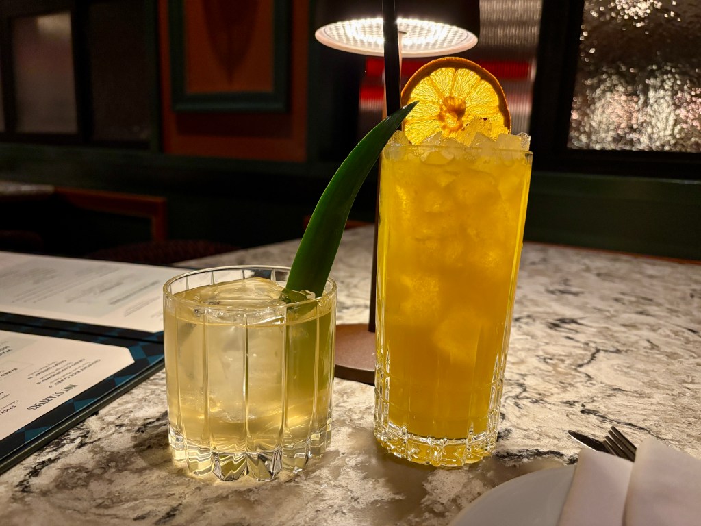 From the bar, we ordered a couple of cocktails. A Mango Mezcalita — smoky and sweet, but a little too like Sunny-D for our liking — and a clarified pina colada. Made with whey, the clear drink had an earthy note that complemented the creamy coconut. Not much pineapple was present, other than tall green fronds garnishing the glass. The cocktails were good, not exceptional, and we planned to order wine for the next round.