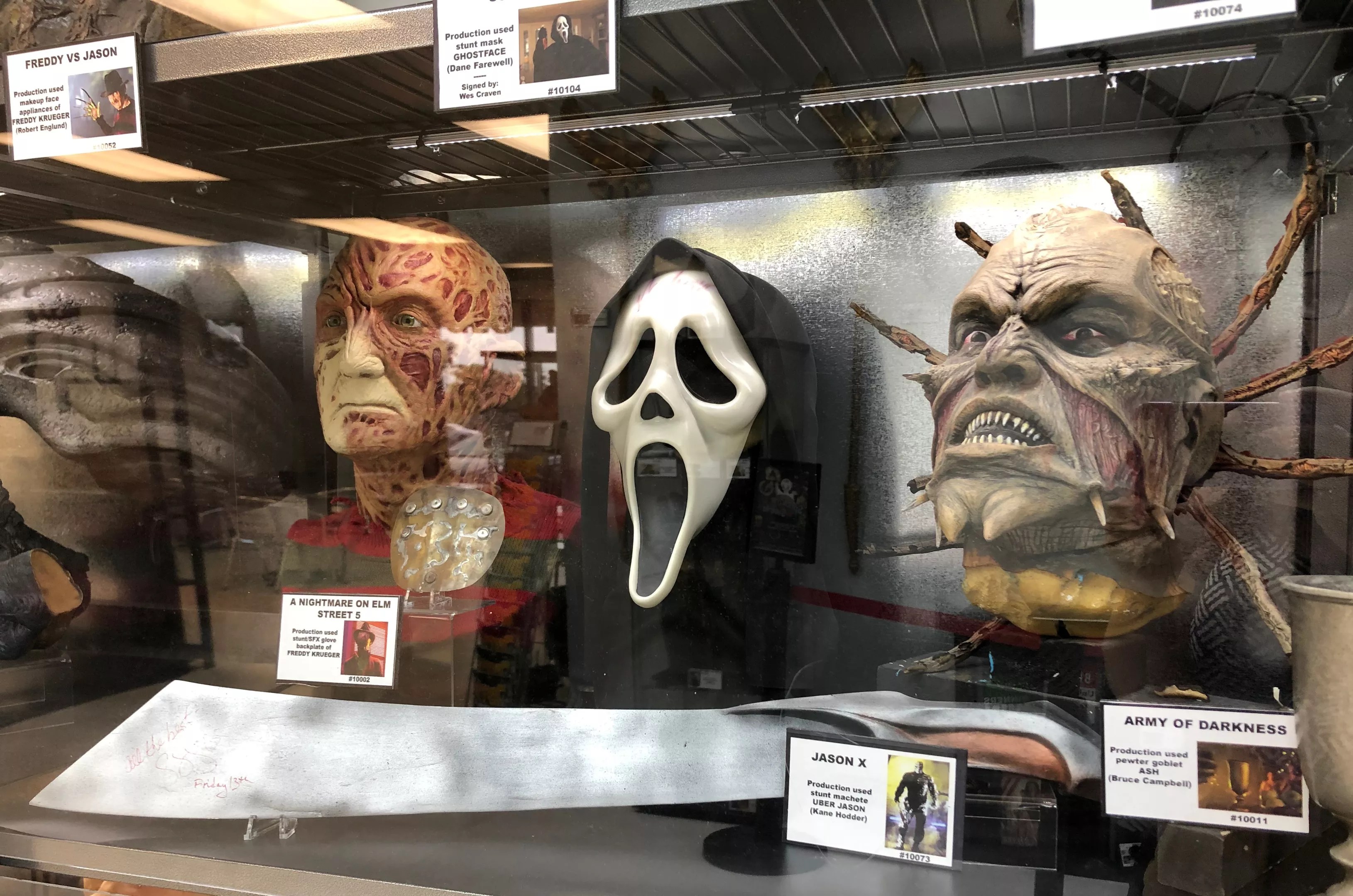 But in that back nook, a small horror museum waits for everyone from novice to ultimate fans. It’s a rotating exhibit of items from the Horror & SciFi Prop Preservation Association, an Arizona-based, nonprofit organization preserving some niche film memorabilia known as HSPPA. Items range from screen-used props to wardrobe pieces and collector pieces.