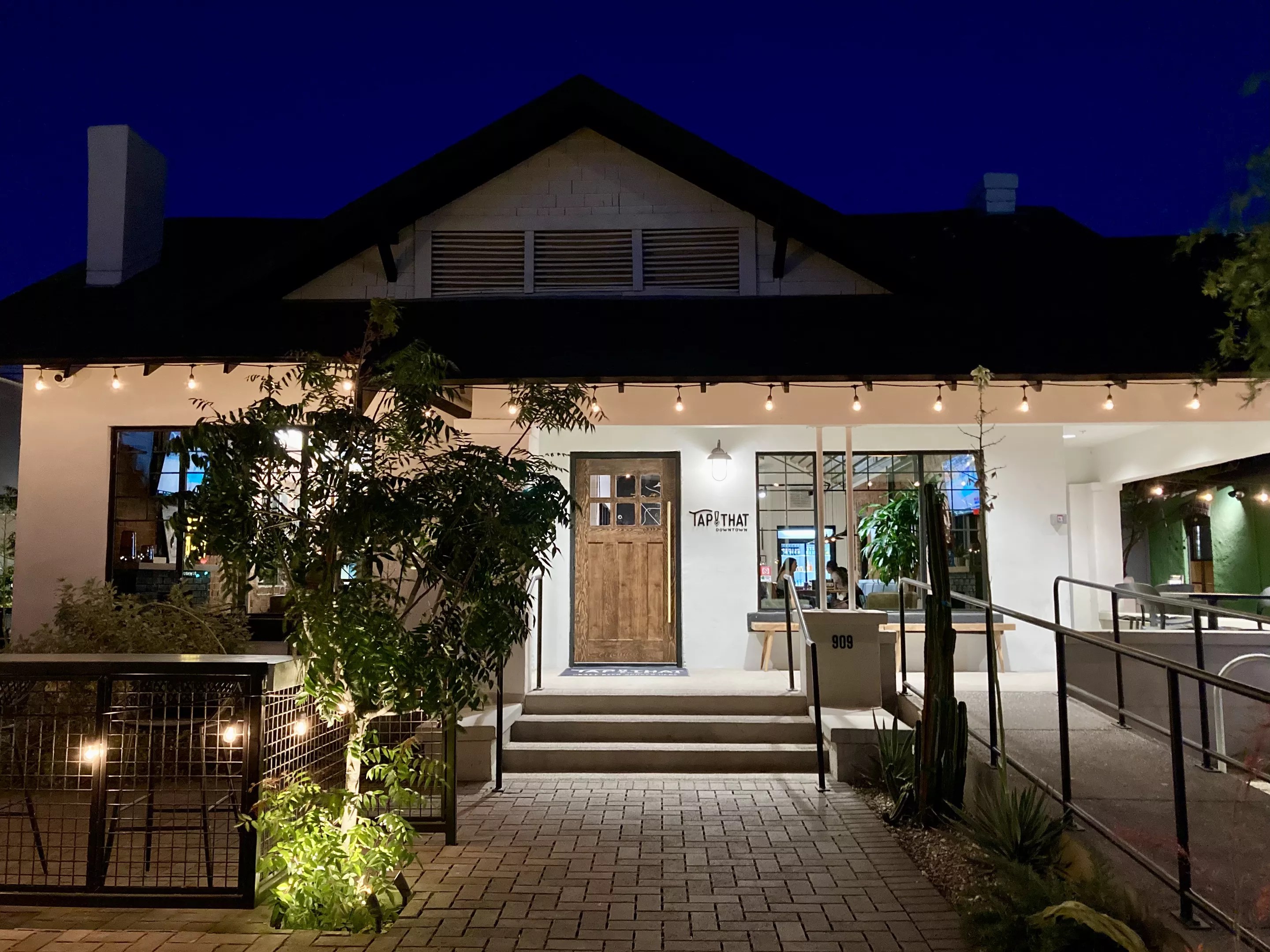 This beer-and-wine joint, opened in December, occupies a literal house on Fifth Street just south of Roosevelt Street. It’s easy to miss, surrounded by high-energy hangouts: a live reading at Lawn Gnome Publishing, a guy played amplified harmonica tunes at Bud’s Glass Joint, music coming from Taco Chelo. But once you spot Tap That, you realize there’s a different vibe.