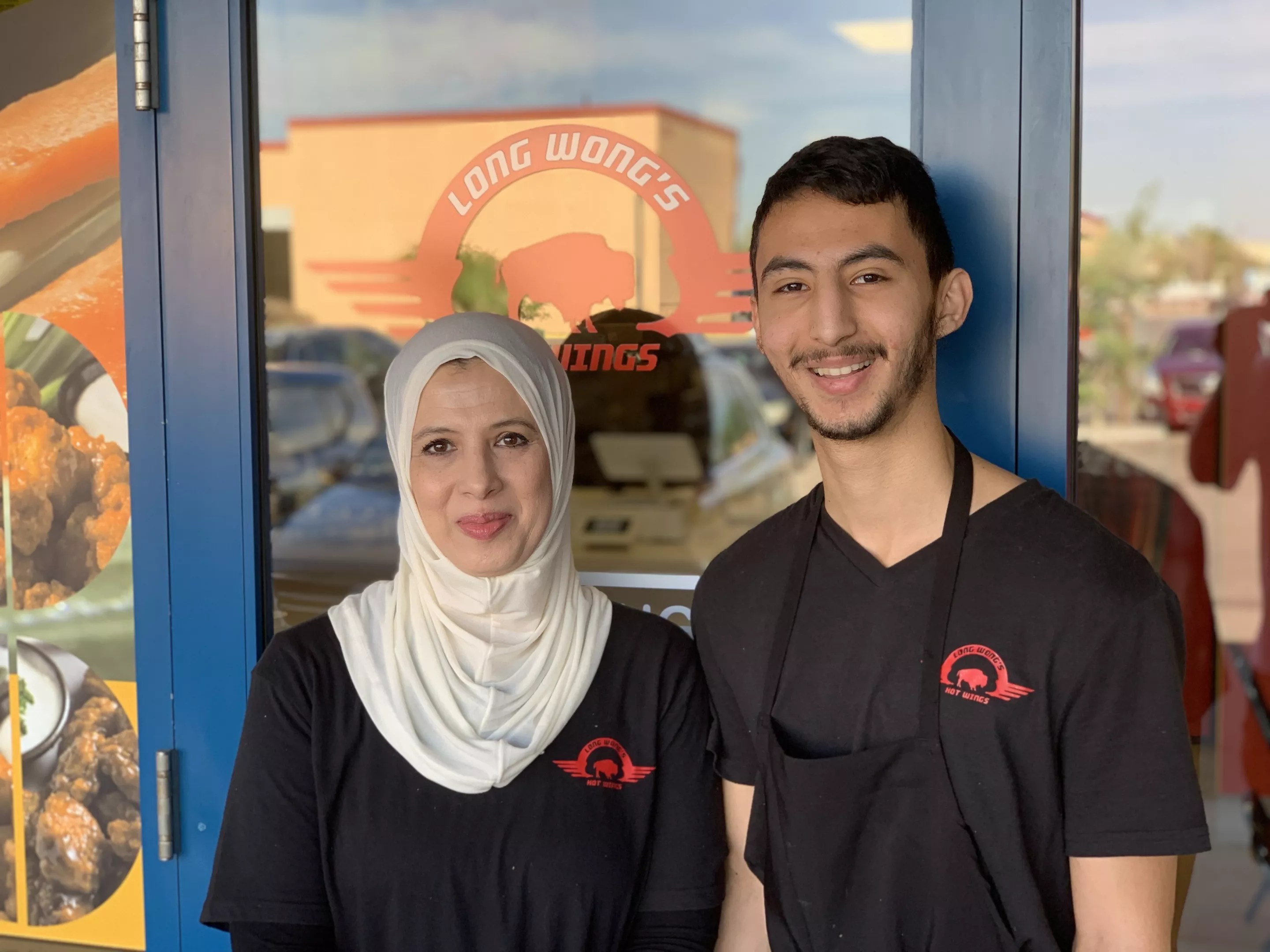 Long Wong’s Hot Wings co-owner Ola Elzaharna and her son, Mohammed.