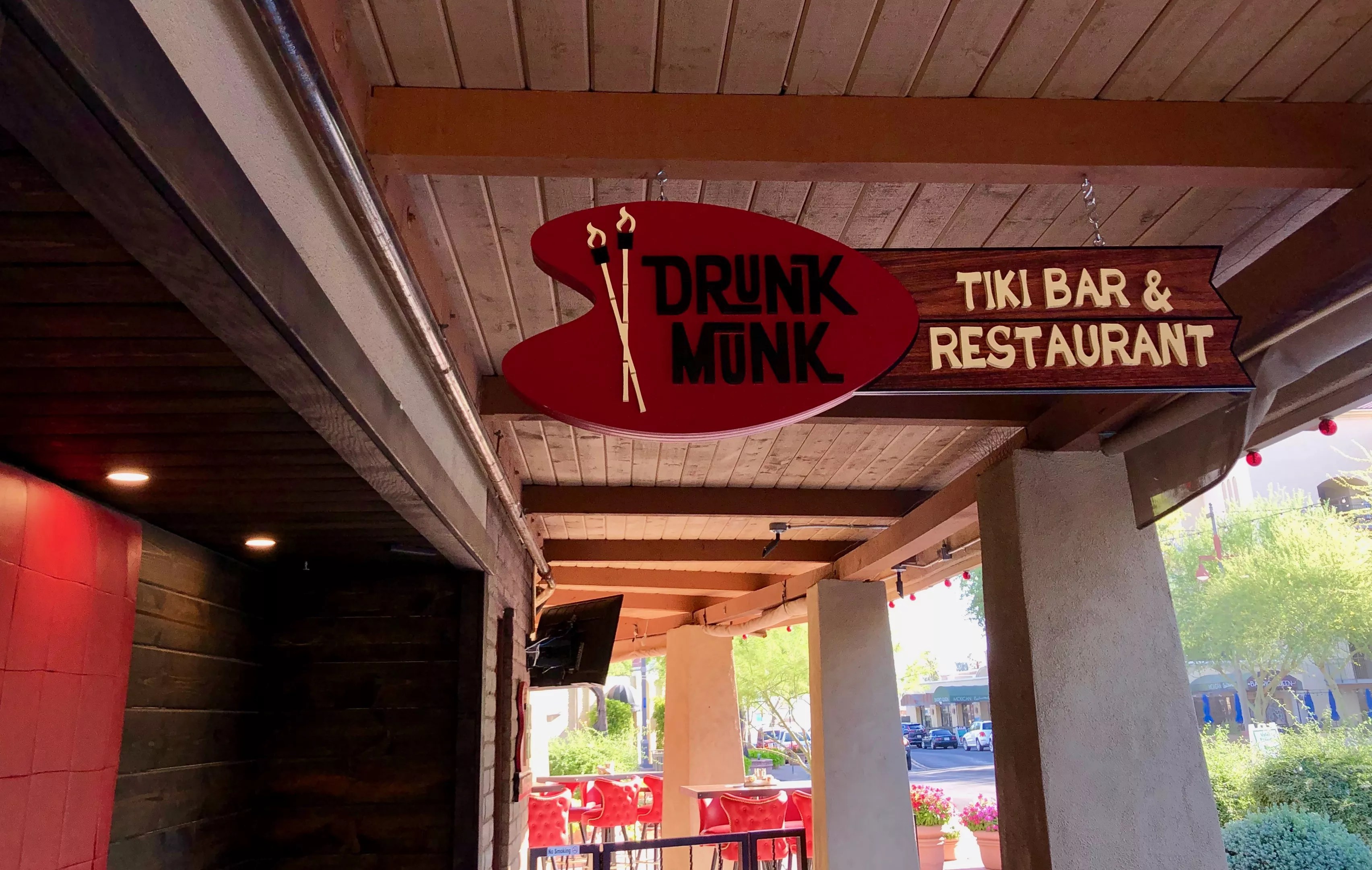 The tiki-themed Drunk Munk opened in early March at the corner of Sixth Avenue and Stetson Drive in Old Town Scottsdale – or, more specifically, the Fifth Avenue Shopping District. Yes, the Polynesian bar and restaurant is in the old Cowboy Ciao spot, and while it looks like only the sign was swapped on the outside, the inside got a pretty good makeover.