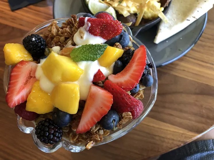 Without a doubt, Otro Cafe has one of the best breakfasts in town. A Mexican influence runs through breakfast dishes like a cool chile heat. A frittata unites the foolproof combo of mushrooms, spinach, goat cheese, and caramelized onion, the slight south-of-the-border nod coming from pico de gallo. A BLT uses chewy telera bread. Chilaquiles come red, green, or Christmas-style. The tortillas have been layered in a lasagna-like stack that rises above the sauce. Deeply browned discs of cooked cheese can be found in the stack. Light these up with some of that luscious salsa verde, or the roasty, spicier red salsa. There are also hidden gems on this menu. One of them is, surprisingly, a muesli of quinoa, faro, and oats. The bowl’s flavors are rich and wheaty, with a robust cereal-milk-like flavor coming through just sweetly enough. The quality of the muesli shows the menu’s range.