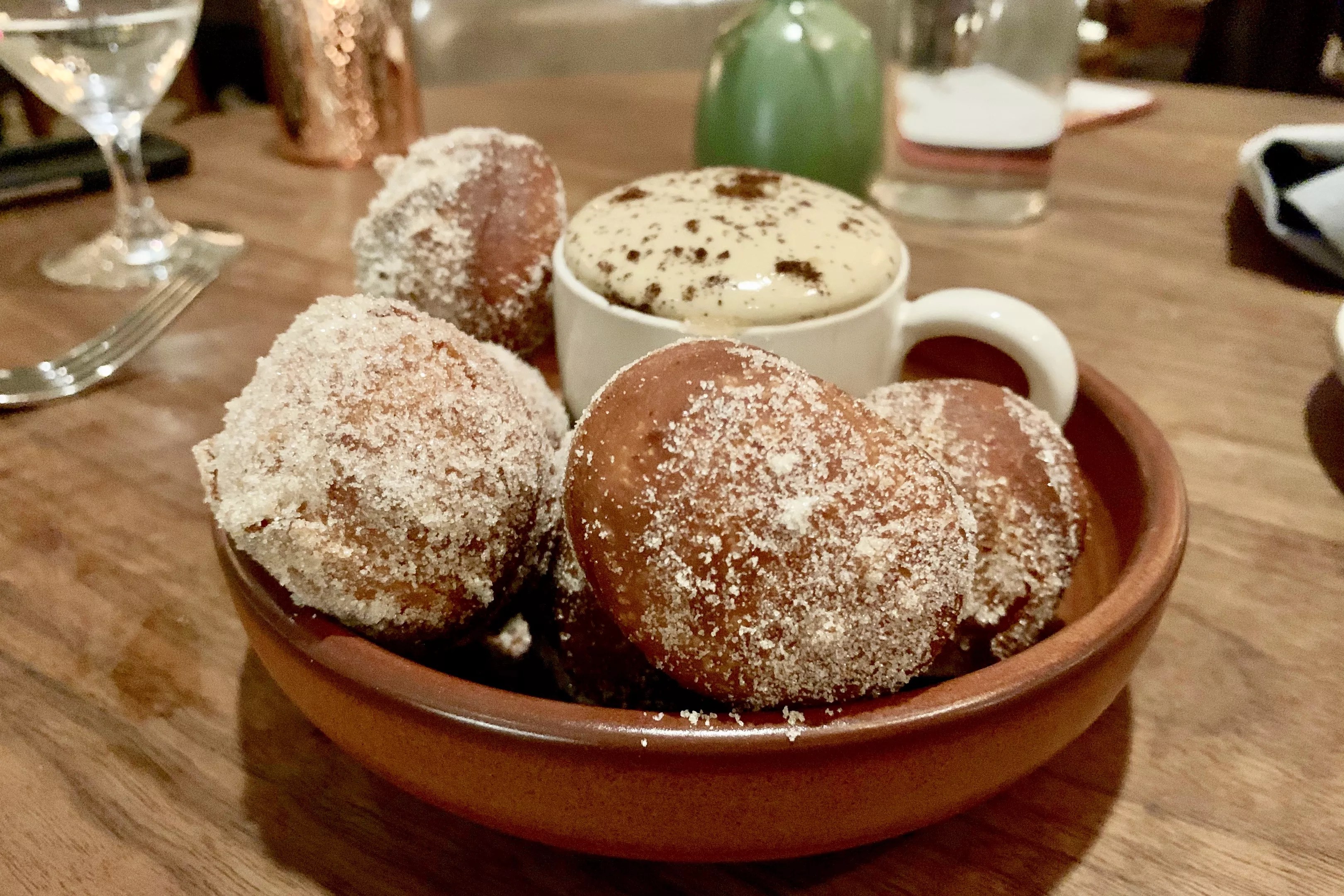 The desserts likewise carried a nod to Middle Eastern ingredients. Feeling a sense of responsibility to our readers, we tried not one but two desserts: Warm doughnuts and a chocolate sesame ganache tart. We chose the doughnuts because how can you turn down any dessert with mentions cardamom and coffee? The melt-in-your-mouth doughnut holes were covered with a cinnamon-cardamom sugar and came with a velvety Turkish coffee mousse.
