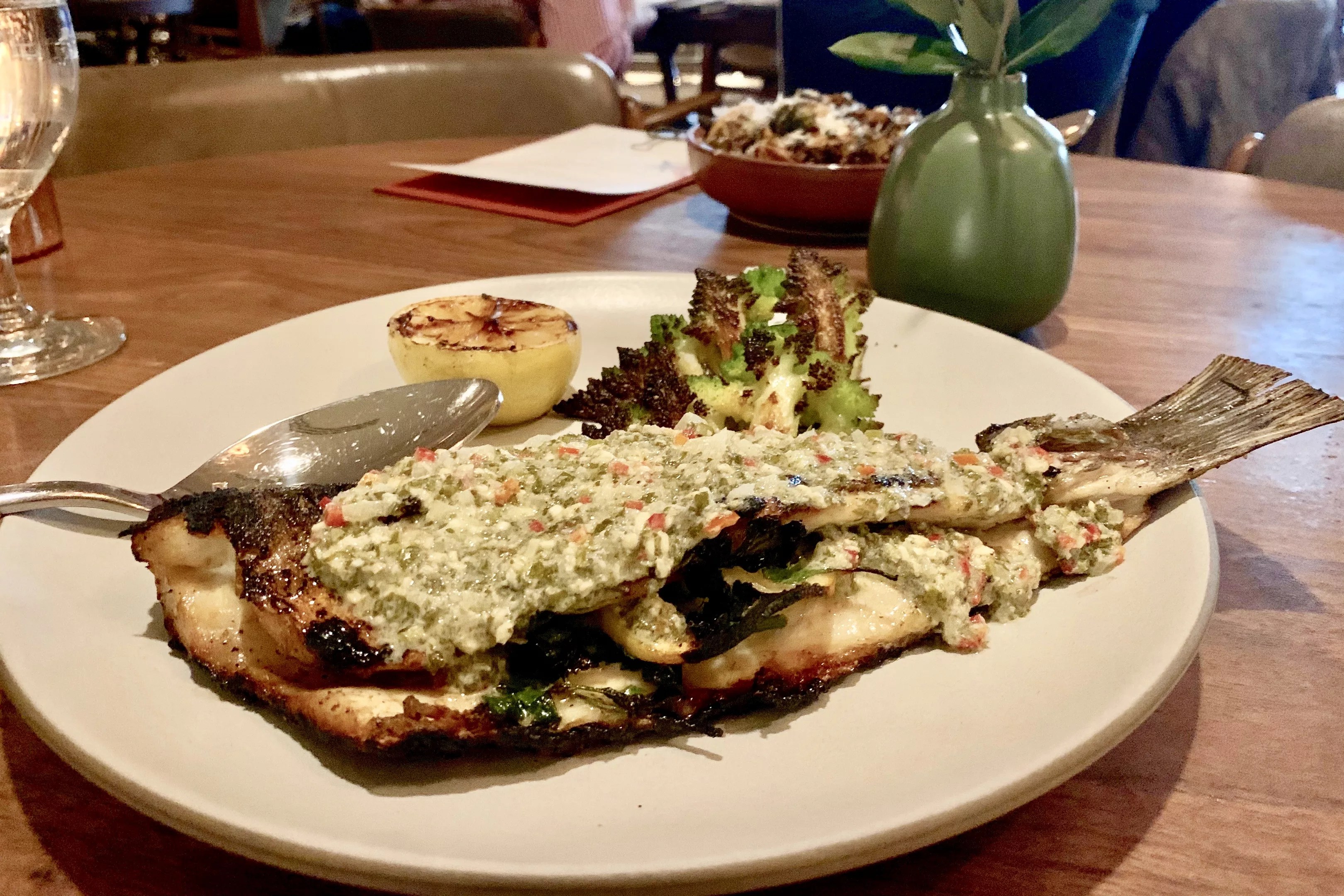 For the main dish, we chose whole grilled branzino, which came with a beautifully charred romanesco along with grilled lemon. Blanketing the flaky, smoky grilled fish is a layer of bagna cauda, a sauce of oil, butter, and vegetables – a beautiful union of texture and taste. Make sure you get a little of everything on your fork.