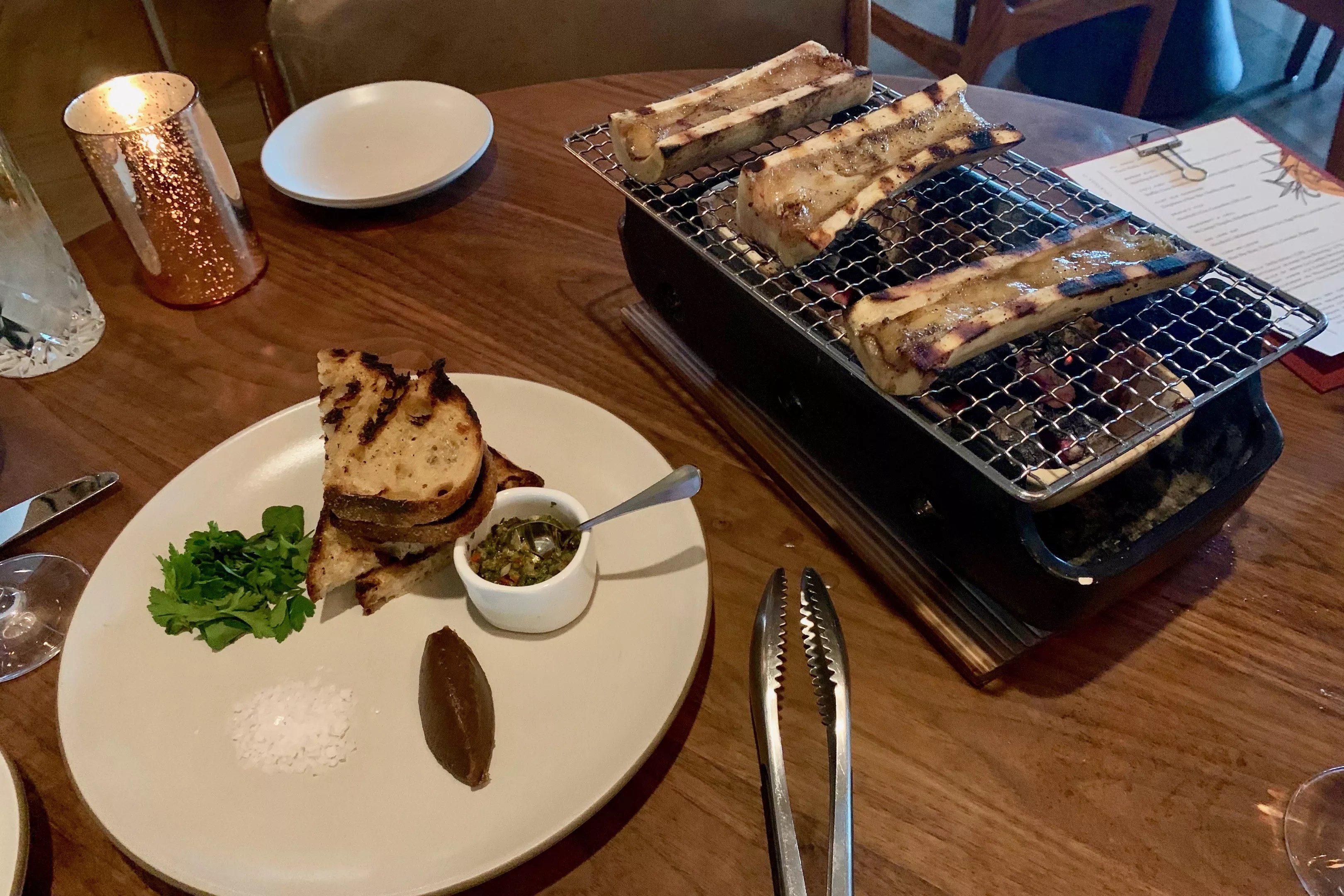 The smoked bone marrow with Medjool dates and salsa verde at FLINT.