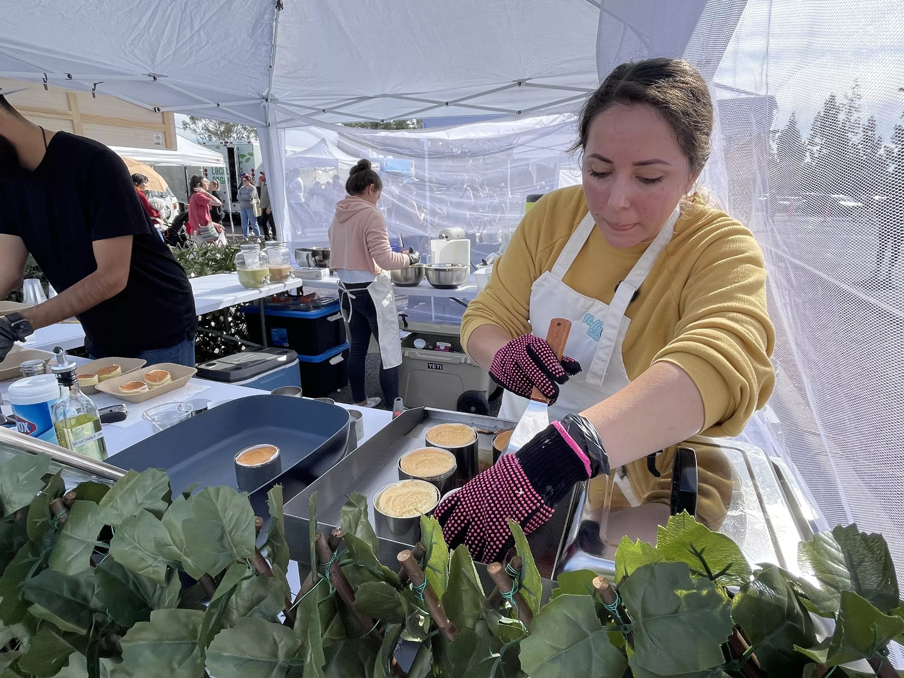 “They melt in your mouth,” Jones adds, describing the texture as light and airy, similar to angel cake. “Because the pancakes are smaller than traditional American pancakes, people always want seconds.”