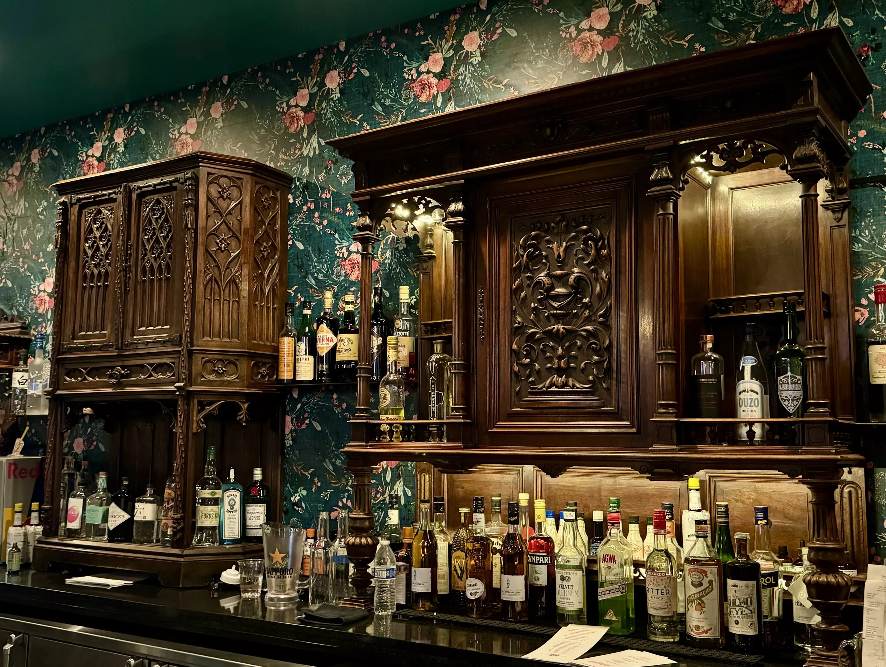Hugo’s Hideaway, the bar side of Hugo’s, has rich emerald tones in the paint and wallpaper.