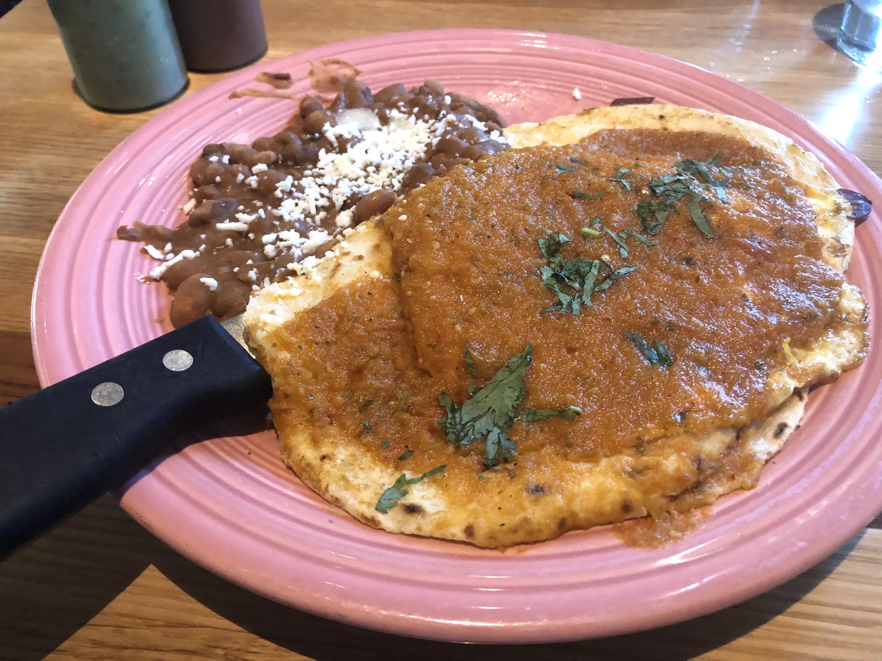 Huevos Rancheros are another standout. You get a choice of salsas, and though whichever you choose will cover your eggs in a fresh sea of color, none can touch the tantalizing green salsa that, here, always comes in a plastic squeeze bottle on the side. The tortillas at the bottom of the plate seem to be quesadillas, which, oozing melted cheese, buoy the eggs and salsa, providing the same warm comfort as the cheese-dusted beans on the side.