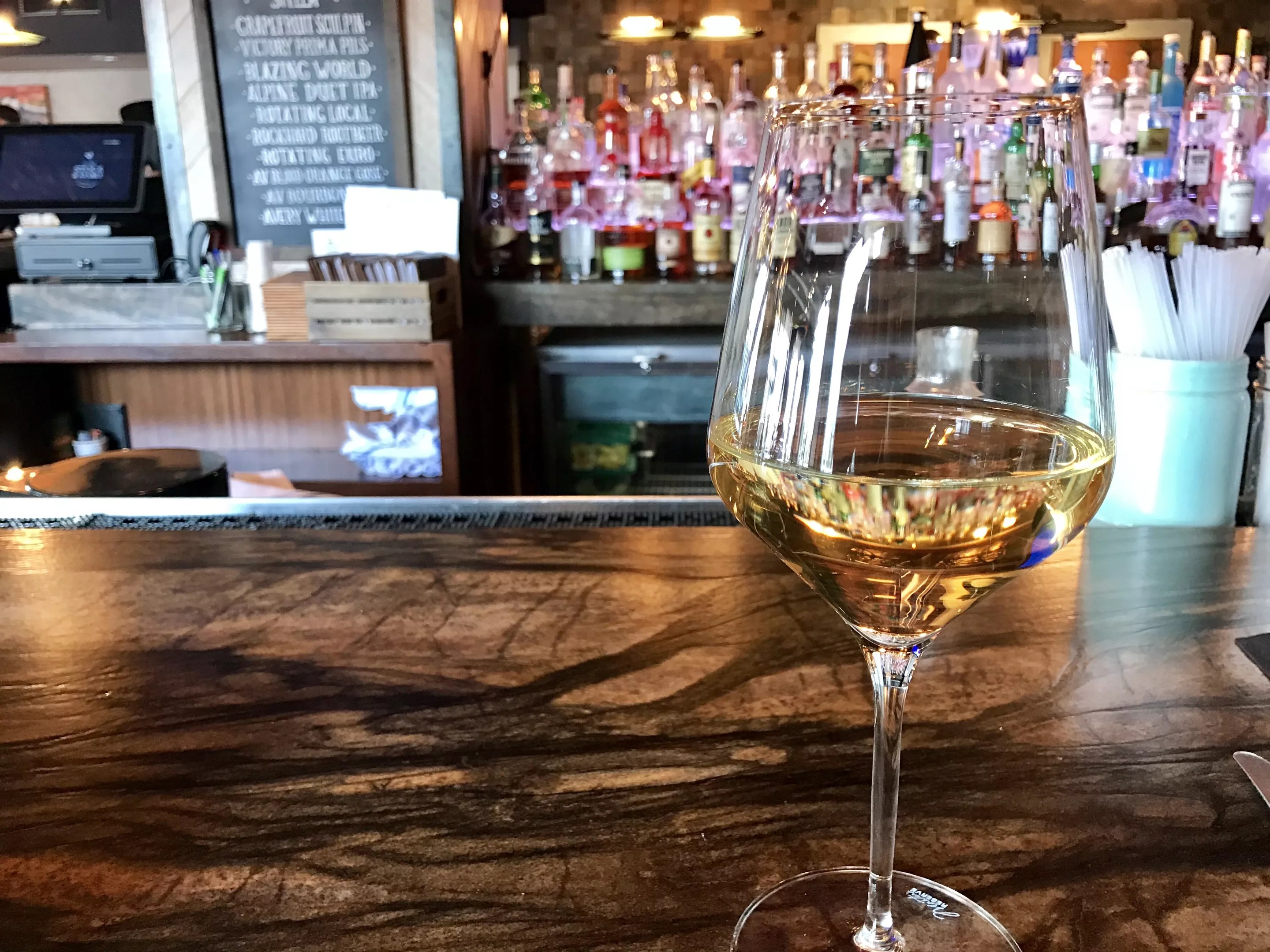 A glass of Michael Sullberg chardonnay – only at happy hour.