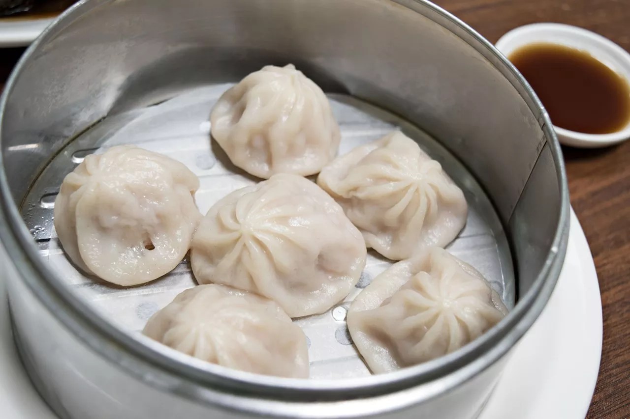 The pleated dumplings, roughly the size of golf balls, are delicately constructed and a little wobbly, seemingly designed to test your ability to manipulate small, slippery objects with chopsticks. You pick up each dumpling by its twisted knot, lay it on a soup spoon and then take a tiny bite, slurping out the porky, subtly seasoned broth inside. Or you can simply pop the whole dumpling in your mouth, experiencing a small explosion of juice and meaty pork filling in tandem.