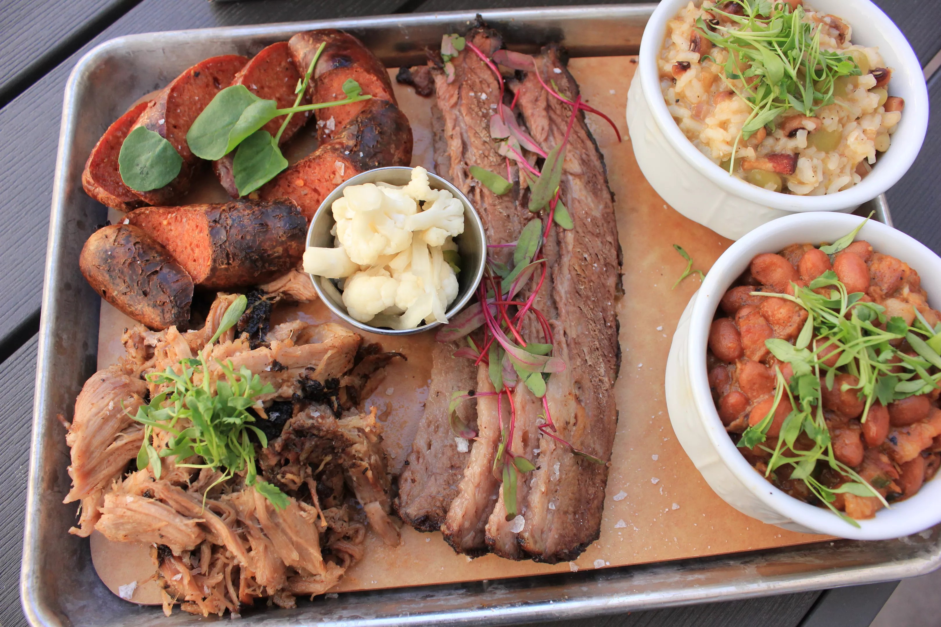 High & Rye isn’t a barbecue restaurant. It’s a Southern restaurant that happens to have barbecue, which you may or may not want to enjoy as part of your meal. Smoked meats include 14-hour brisket, 10-plus-hour pork, house-made Texas-style sausage, and ribs. Chicken wings are also smoked; they come sheathed in a rub bristling with sugar and beside a dope sauce made from Point Reyes bleu cheese.