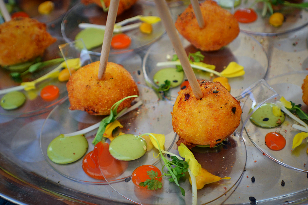 Tako Yaki Hush Puppy with Sriracha Tomato Jam from The Dressing Room