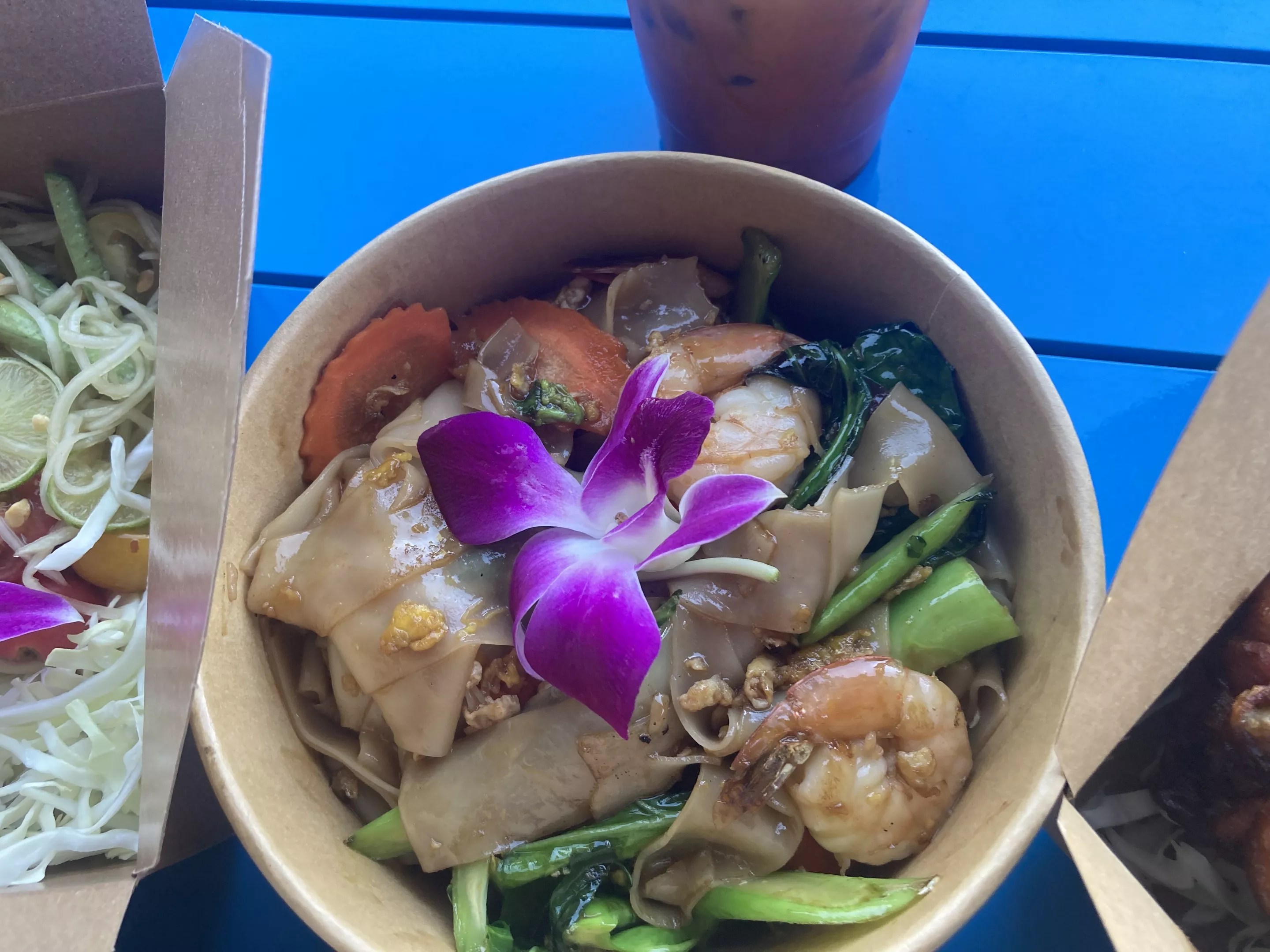 A mutual love of Thai food influenced the final offerings, such as Pad See Ew (rice noodles with chicken or shrimp), Pad Thai and Kaow Pad (Thai fried rice). However, the Sidavones added what Kik refers to as the “Laos approach” to the staples.