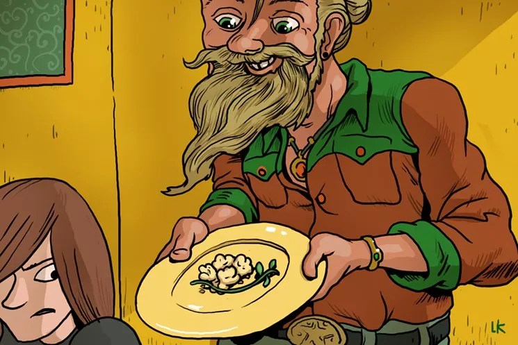 “I had barely taken off my coat when our server, whom I recognized as the owner with his Rasputin beard and plaid cowboy shirt, asked politely for my drink of choice. They have a full bar with special little cocktails they concoct with items that are supposed to impress people, like Pine-Sol and bark.” – Laurie Notaro