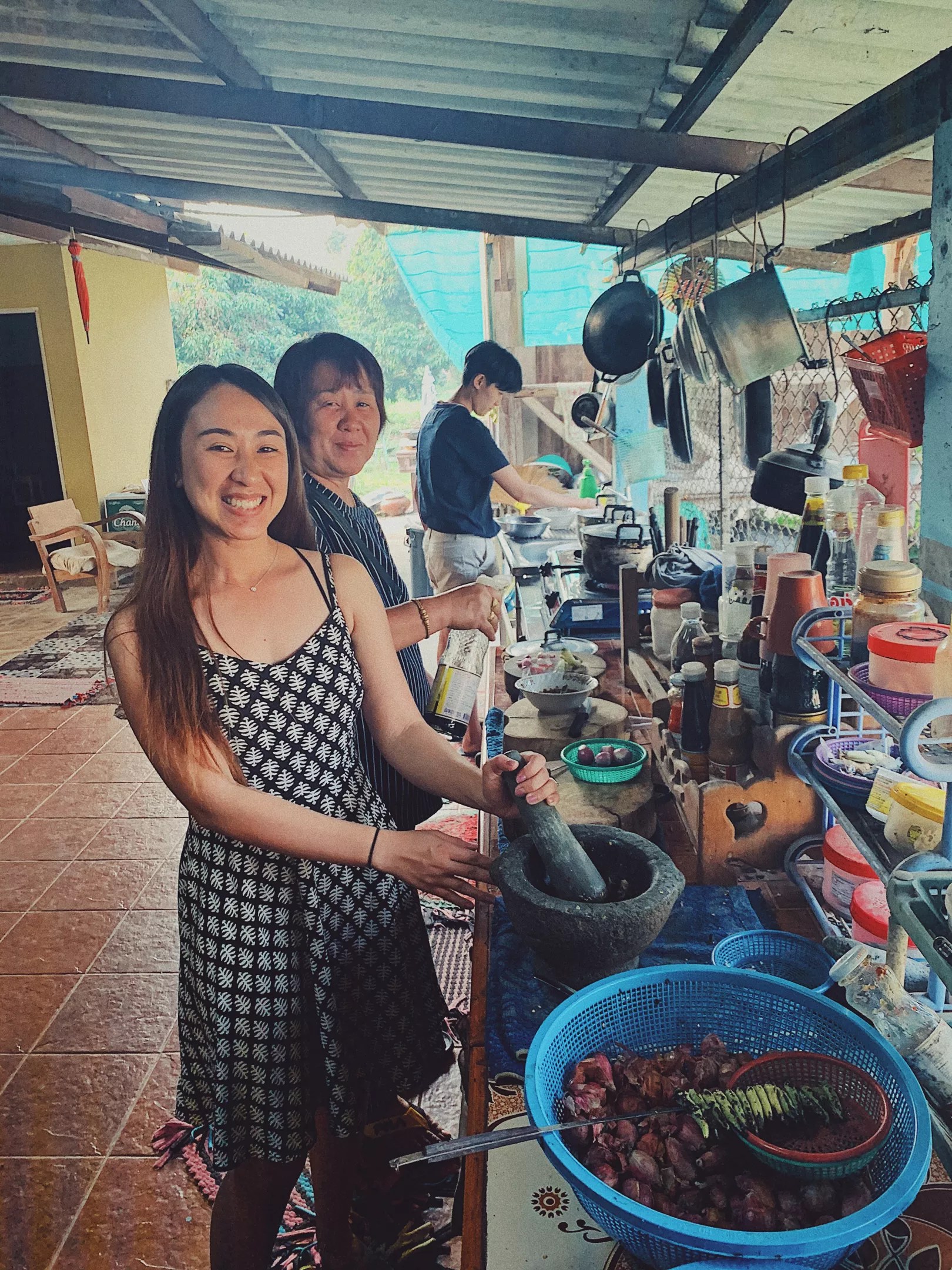 The Martins take students far from cities and into their kitchens. Perennial stops include Baan Tahm Phratat, home to Alex’s (unrelated) “Thai grandmother,” Won Pen Khumwongsa, who cooks “central-western Thai food, more village stuff.” They also spend time in southern Thailand among the Moklen, who Alex says live on the coasts of Phuket, Ranong, Phang Nga. From the Moklen, Alex and Yotaka have learned esoteric culinary wisdom, like jungle herbs and methods of sustainable squid catching.
