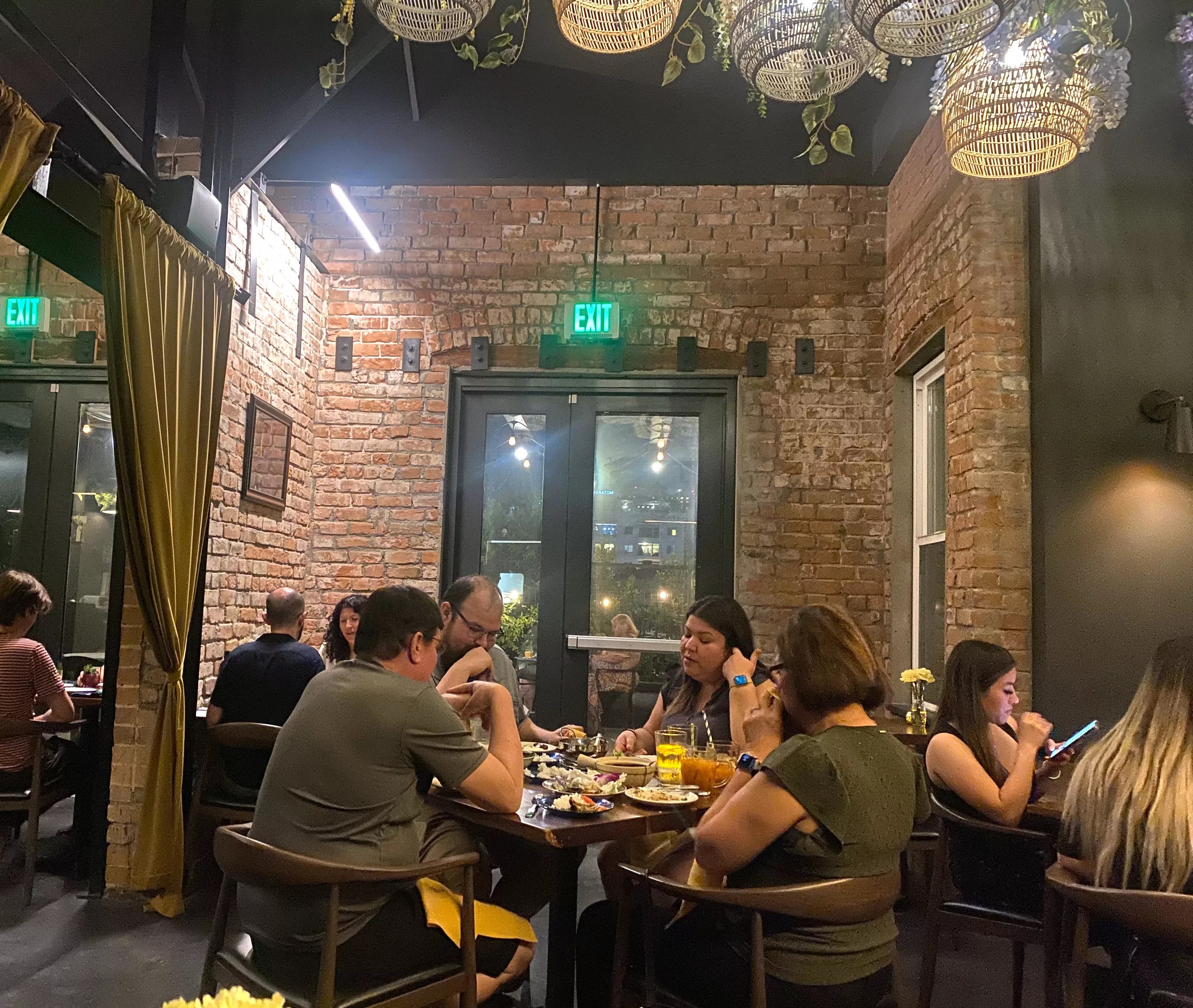 One wall displays wine racks while rattan pendant lights shine against a green, tiled bar. On a recent visit, a passionate server gave a quick menu rundown. Stomachs growled in anticipation.