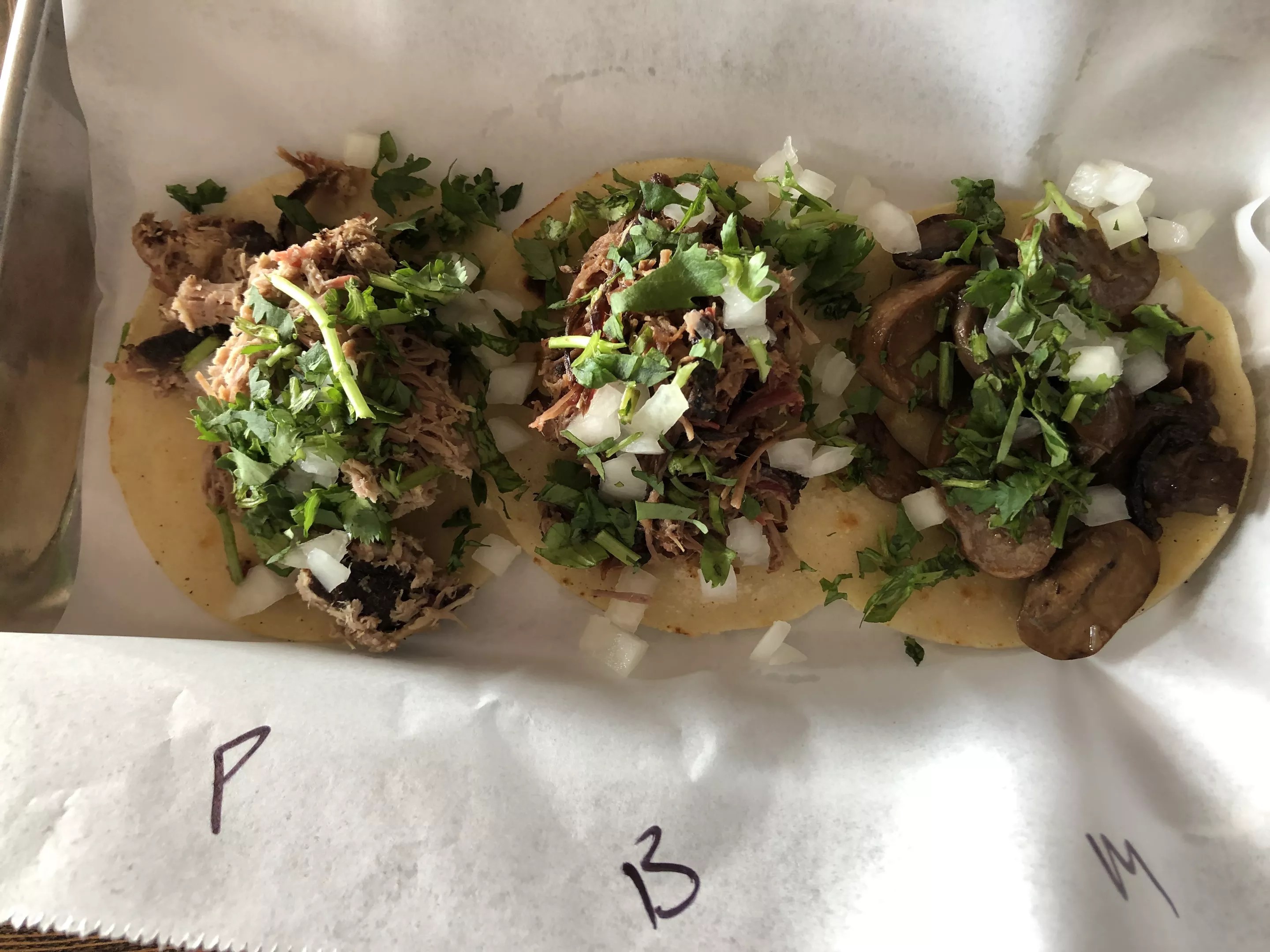 Pork, brisket, and mushrooms for tacos all pack smoke.