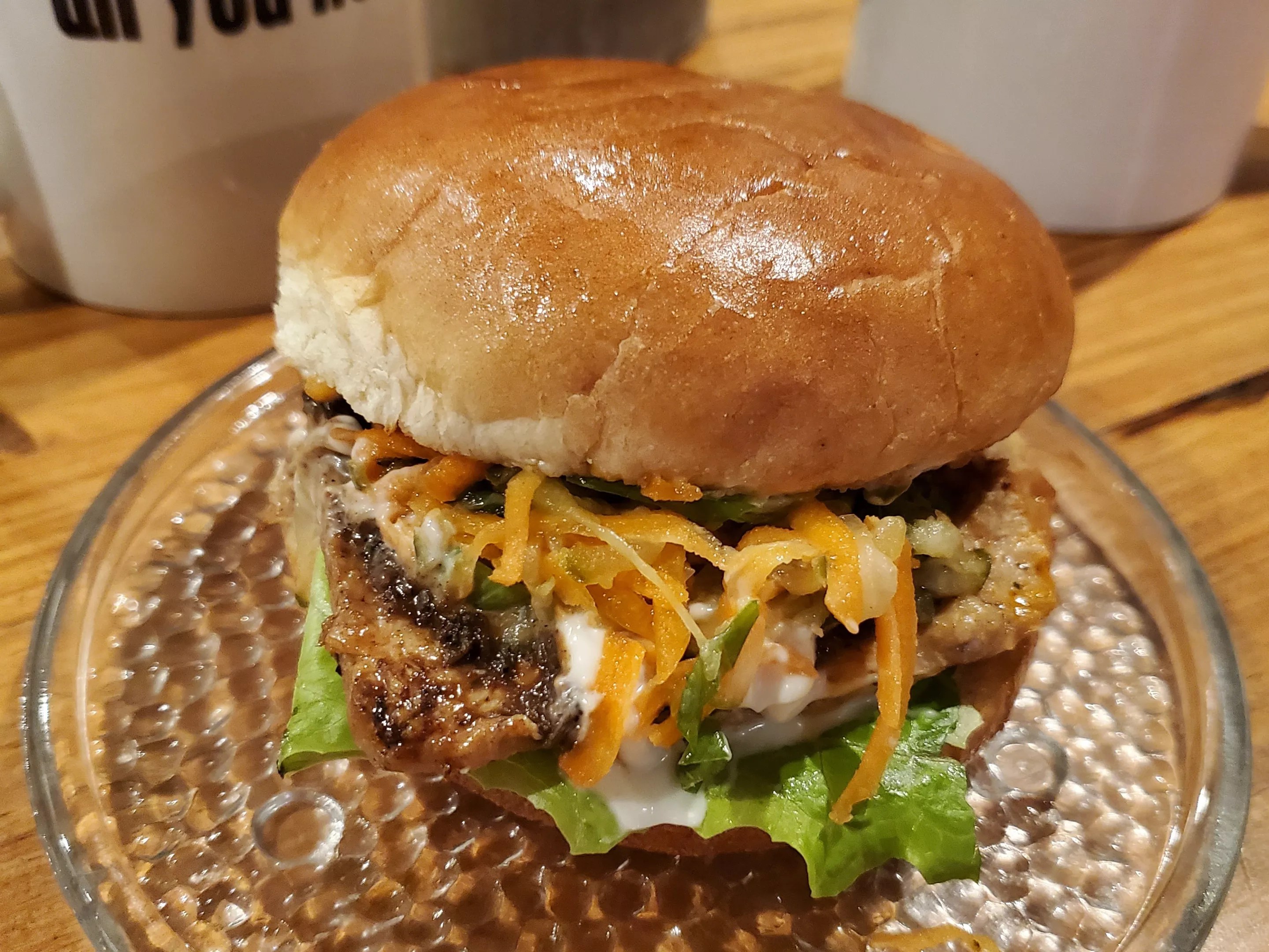 The spicy Jamaican Jerk Sandwich with “mama’s slaw” is Lowdown Vegan’s number one seller.