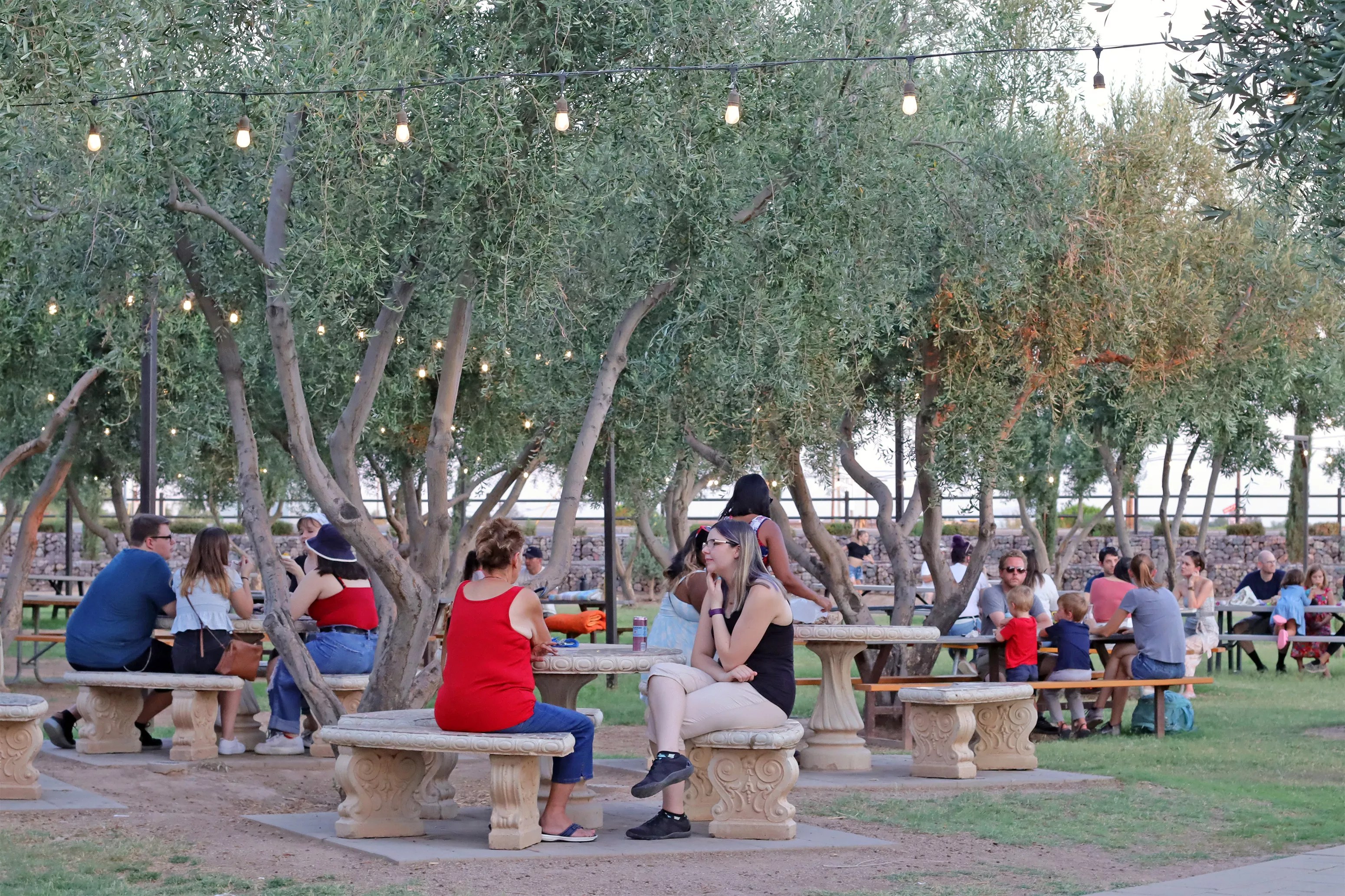 The front grove is a popular spot for diners and is shaded by some of the original trees owner Perry Rea planted before the Queen Creek Olive Mill opened in 2005.