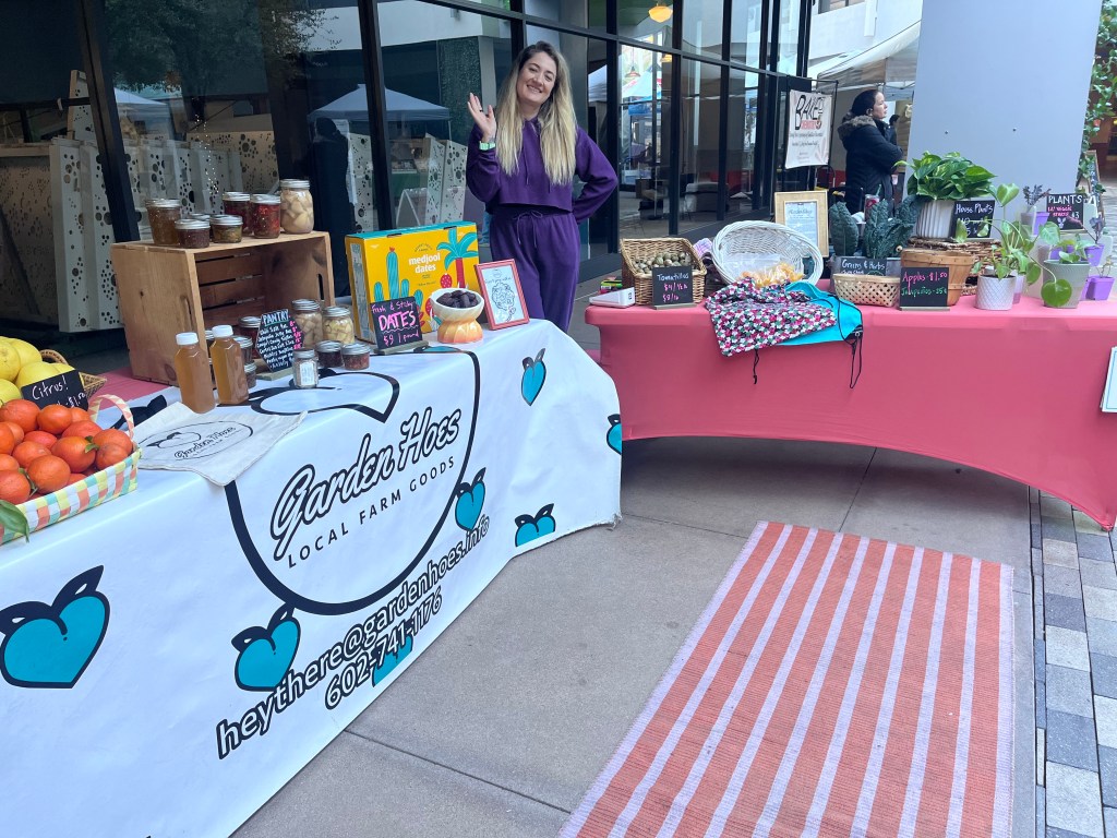 The Downtown PHX Farmers Market has a new addition with a memorable name. Every Saturday, shoppers can now buy hyperlocal produce, eggs and other goods from Tabitha Helton’s urban farm, Garden Hoes Local Farm Goods.