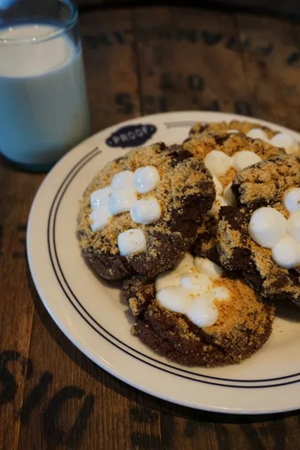 Proof, an American canteen located at The Four Seasons resort, has its very own bakeshop. Among its cakes, pies, ice cream, milkshakes, and candy, guests can also find traditional and specialty cookies. Their s’mores cookie is a fresh twist on the chocolate chip cookie, but sprinkled with graham cracker crumbs and melted marshmallows, and served warm. Because of its popularity, patrons at Proof can order it all year round.