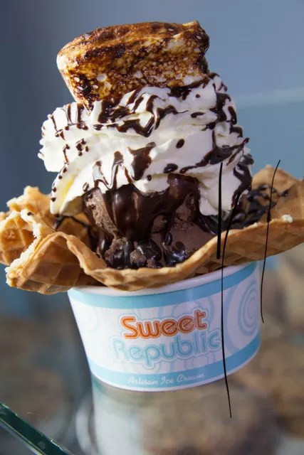 The campfire s’mores sundae is nothing short of spectacular, except if you could be eating it while watching a fireworks display. Sweet Republic is known for their large variety of intriguing flavors that appeal to all palate profiles. The sundae is prepared in a waffle cone bowl, with Belgian chocolate ice cream covered in whipped cream, drizzled in hot fudge, and topped with a roasted marshmallows. With the shop’s late-night hours and delivery option, this sundae could be the perfect nightcap.
