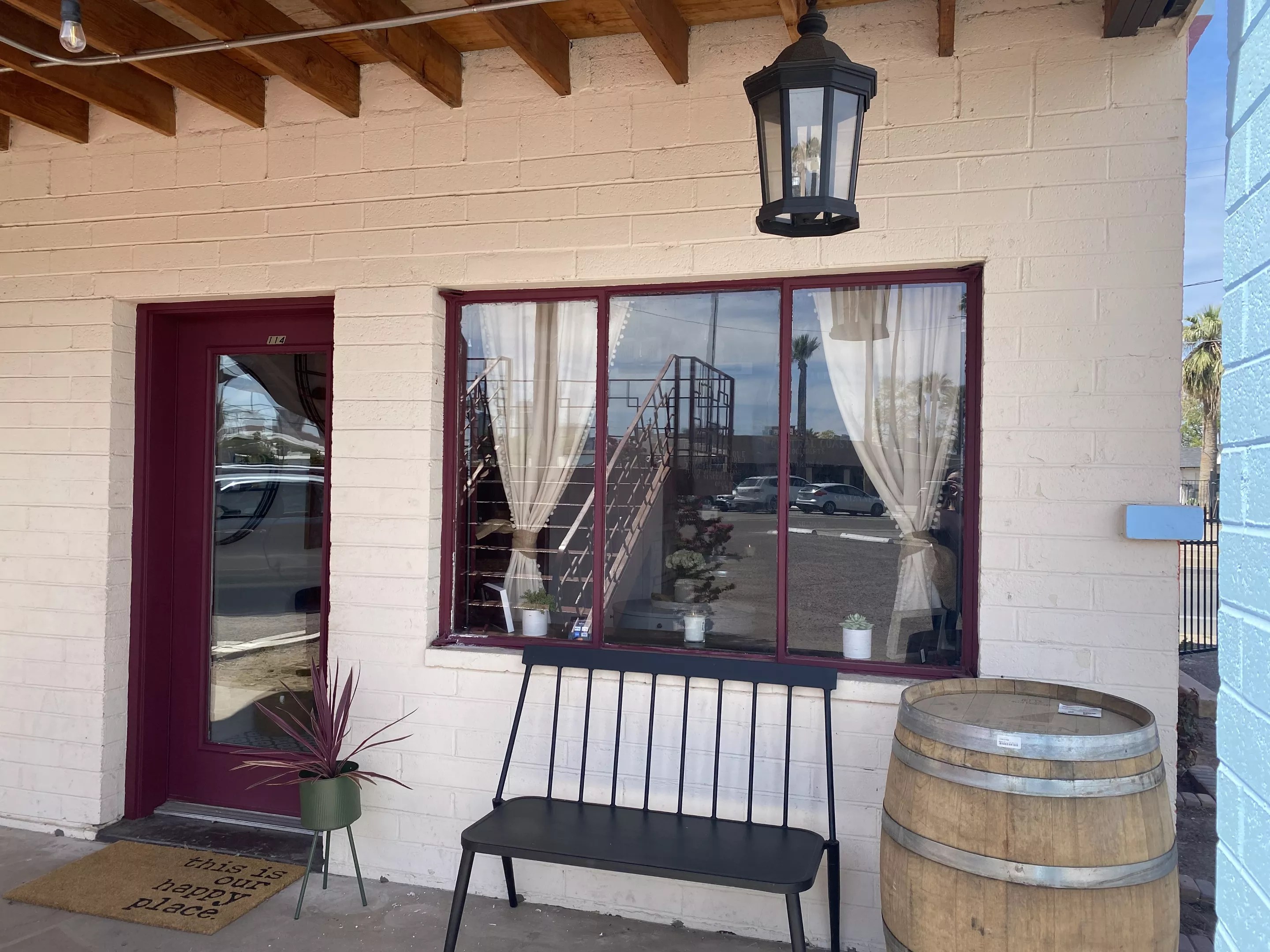 Desert Sun Plaza is also home to art studios, vintage stores, a flower shop, a bridal gown store, tattoo parlors, Testal restaurant, and Mis Raices Cafe, among others. The Catheys have plans to cross-promote with their fellow business owners and already hired Adam Garrett of Caged Heart Gallery to create their wall art.